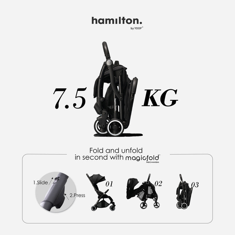 An everyday stroller that is easy to use, quick to fold and small to carry around and fit in most airline overhaed compartments, Stroller that is designed for city dwellers and practical parents that prioritize convenience when having a baby. The stroller is suited for everyday use and ready for infant to 6 years old. Can be coupled with travel system (Carseat) or bassenet for new borns. Easy to fold with Hamilton's Magicfold and small enough to fit overhead cabins on most airlines