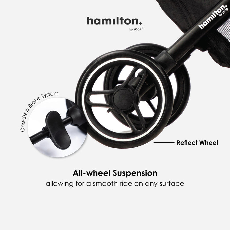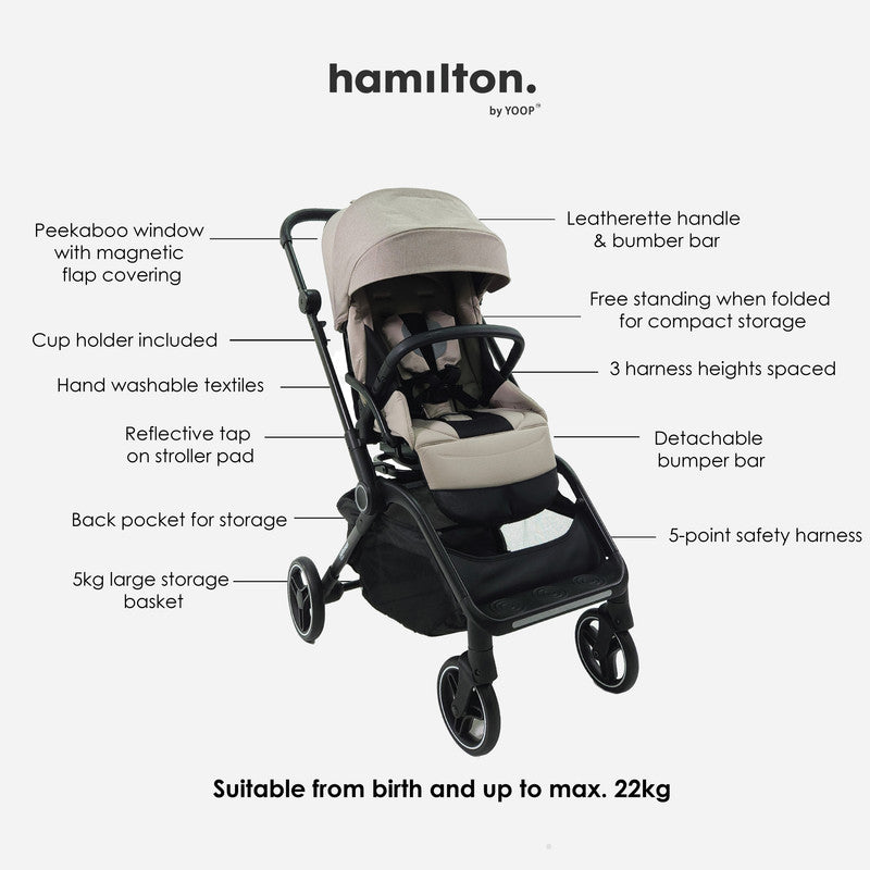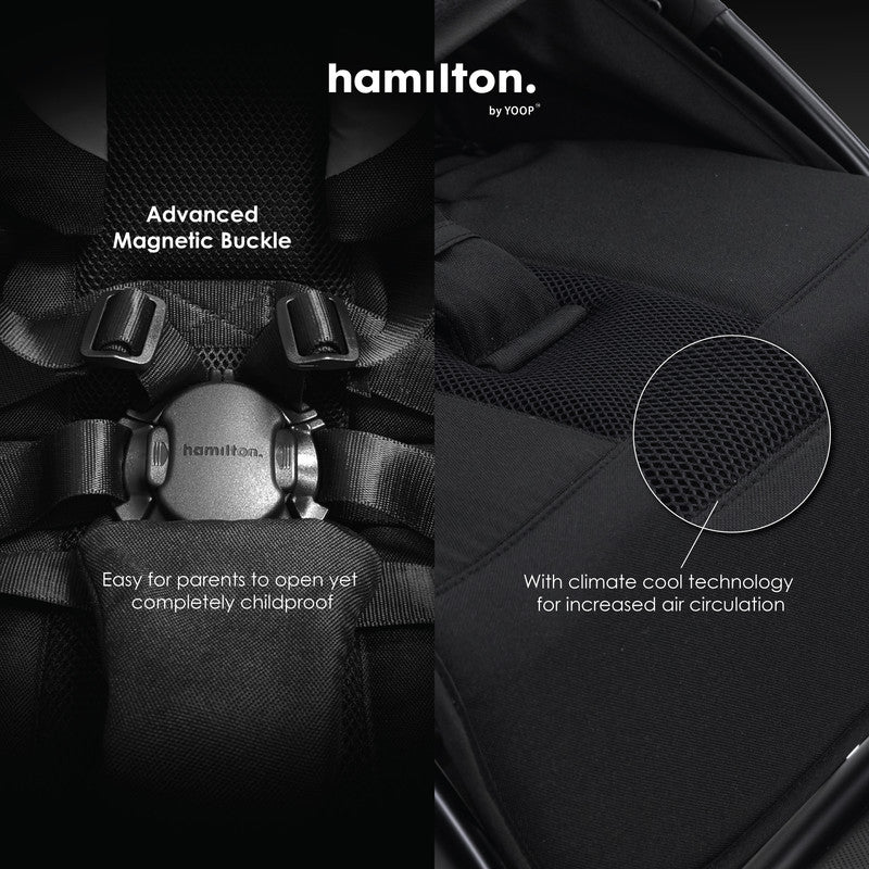 Safety & Convenience - hamilton by yoop strollers meet EN 1888 safety standards. The safety of your child is therefore guaranteed with the 5-point magnetic belt system and the single braking system with large pedal. Parents can easily open and close the magnetic buckle. Still, the buckle is completely childproof. The perfect combination of safe, strong and simple