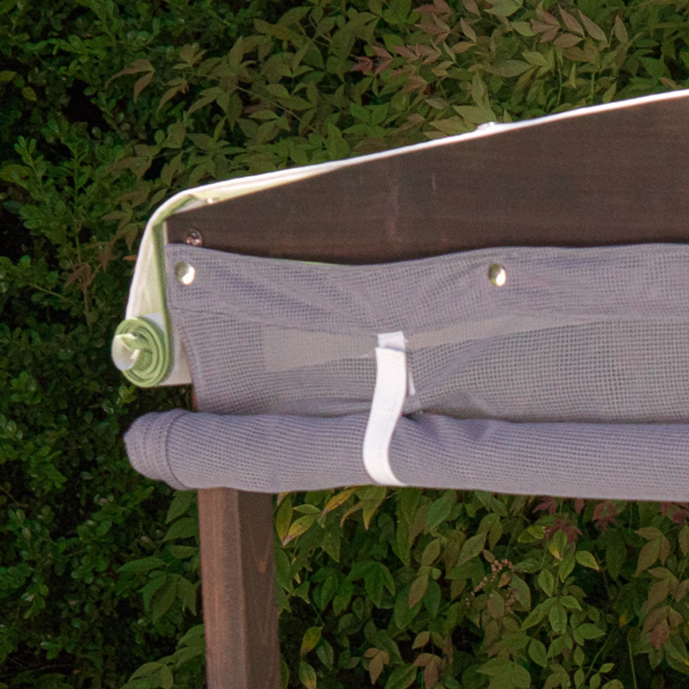 - KidKraft’s Cabana Sandbox lets kids go on all kinds of wonderful adventures without even leaving the backyard. The roll-up cover with mesh windows is perfect to keep kids protected from the elements while giving them a cool little cabana to call their own. The main structure is made of weather-resistant outdoor wood and comes with three storage bins. The roll-up cabana cover is made from sturdy canvas.