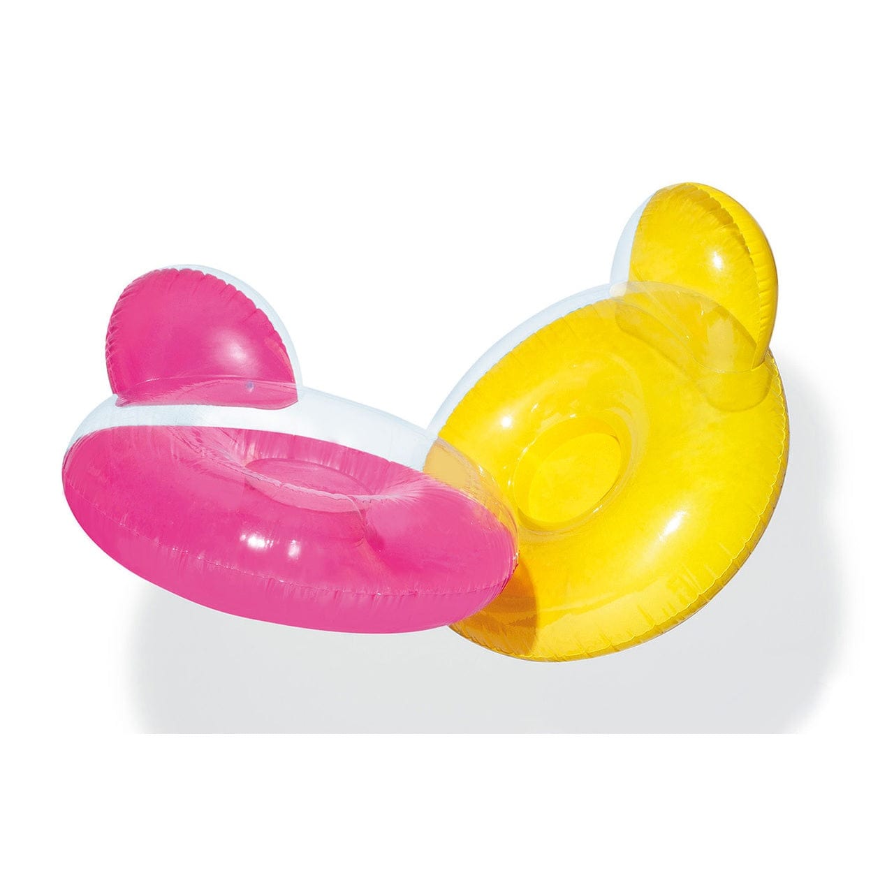Sit back and relax in the Intex® Pillow-Back Lounge. Designed with a comfortable headrest for total relaxation, this comfortable lounge has two air chambers for added safety, and a clear top panel with a decorative bottom design. Designed for pools, patios or home - great TV chair
