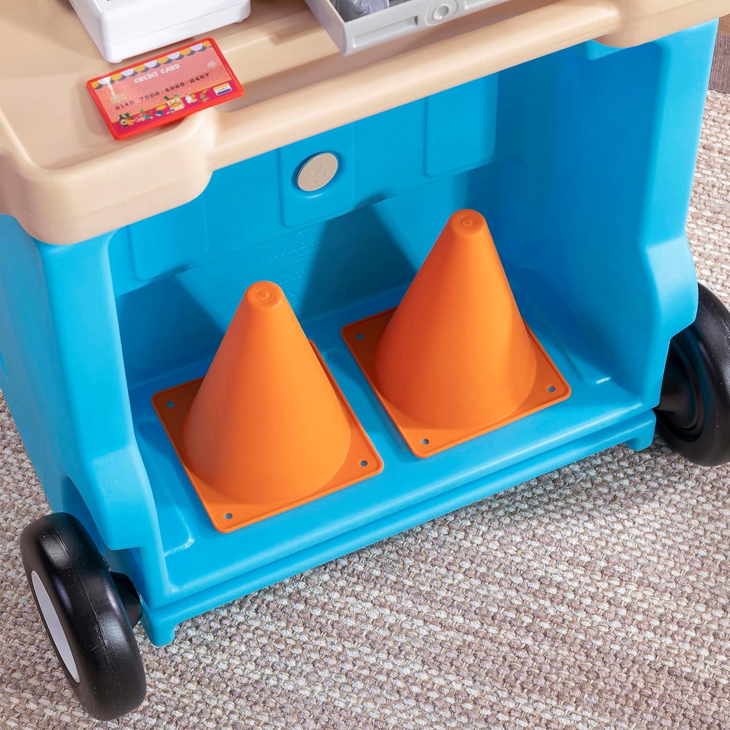Little entrepreneurs, get your stands ready; predict lots of fun and learning! The Step2 Stop & Go Market has it all! This pretend market comes with a gas pump, tollbooth, cones, chalkboard, and working cashier. Kids can take turns role playing as the cashier and customer. Little ones can pull up to the market on their bikes or play cars to fill up on gas and pay the toll. They can even use the chalkboard to write out daily specials, gas prices, or the name of their market. This play market has an umbrella to keep kids protected and cool from the sun, and it also has wheels, so they can easily move it around to their next location!