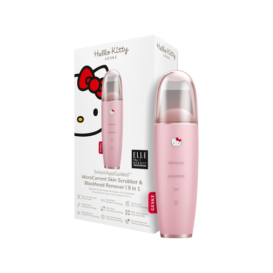 Geske SmartAppGuided MicroCurrent Skin Scrubber & Blackhead Remover | 9 in 1 (Hello Kitty Pink)"