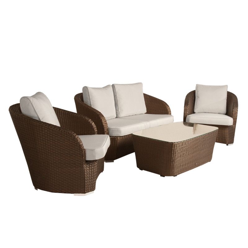 مادة الأريكة : إطار من الألومنيوم مطلي بالمسحوق ومغطى بقصب الروطان الصناعي؛ الوسائد مصنوعة من الألياف الصناعية لتحمل جميع الظروف الجوية.