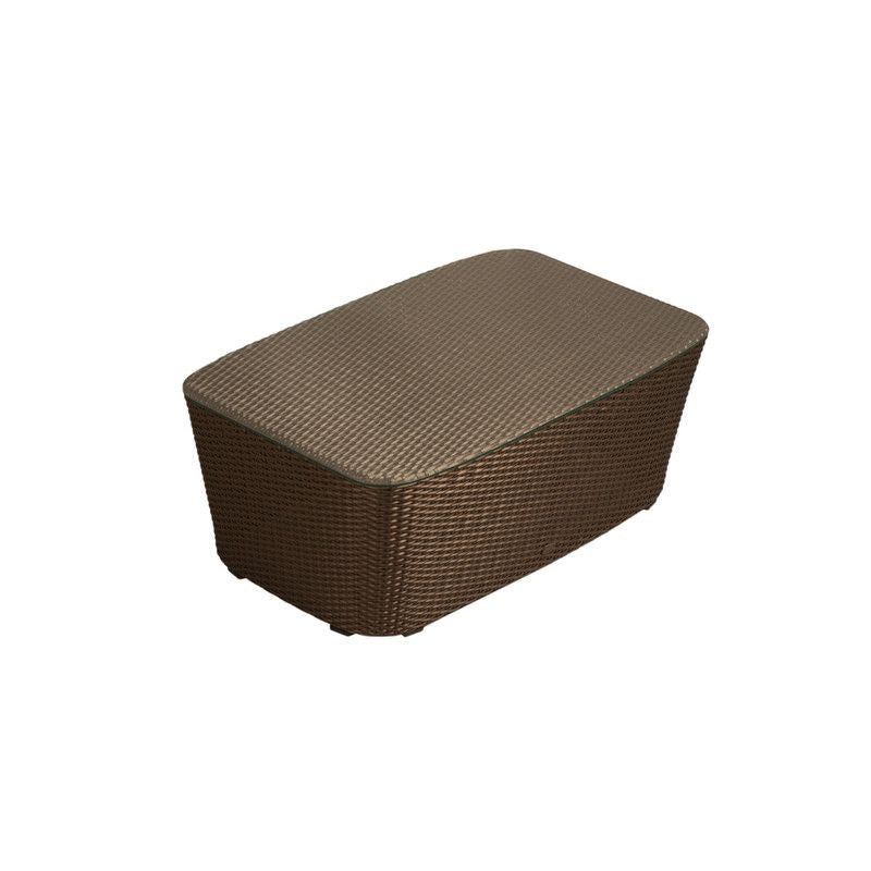 مادة الطاولة : إطار من الألومنيوم مطلي بالمسحوق ومغطى بقصب الروطان الصناعي مع سطح من الزجاج المقسّى.