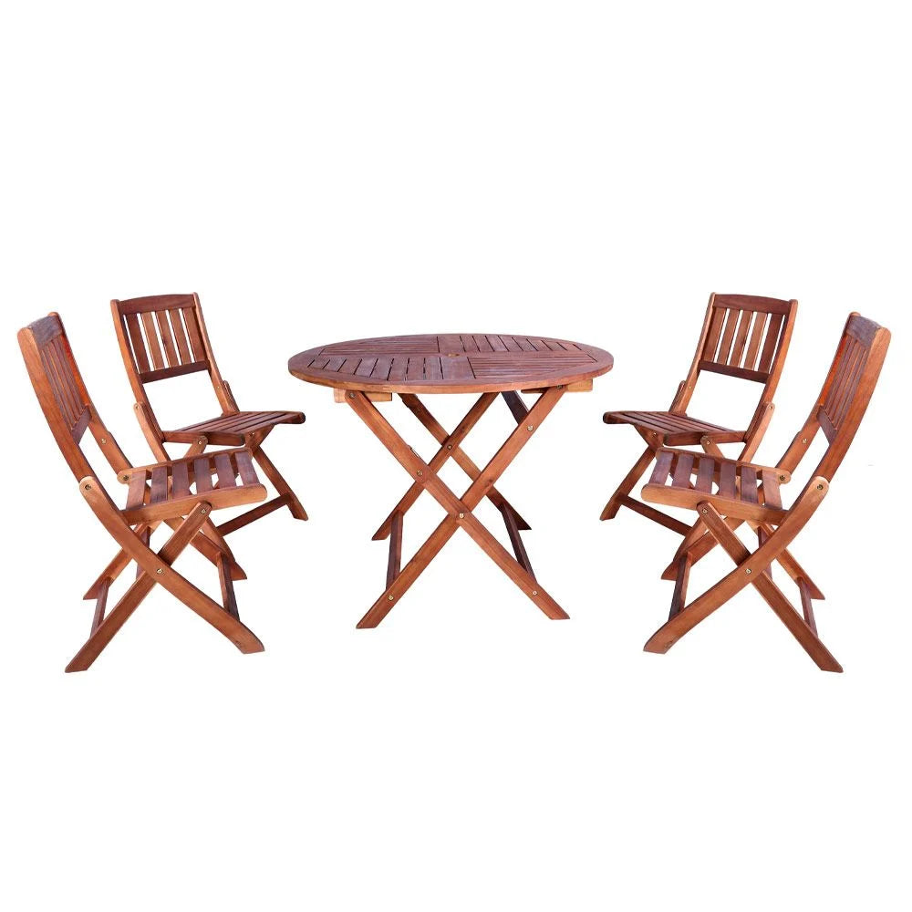 صُنعت هذه المجموعة المكونة من 5 قطع من خشب الأكاسيا المتين والجميل، وتتضمن طاولة طعام مستديرة وكراسي. مثالية لأي مساحة طعام خارجية، حيث يضفي اللون البني الغامق الدفء والرقي. توفر المجموعة راحة وأناقة تدوم طويلاً، مما يجعلها إضافة مثالية لأي منزل.