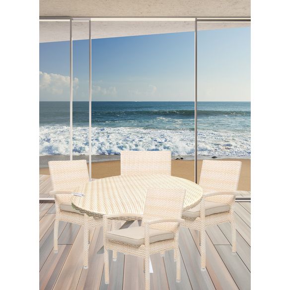 Table Material: Powder-coated aluminum frame covered in synthetic rattan with a tempered glass top.