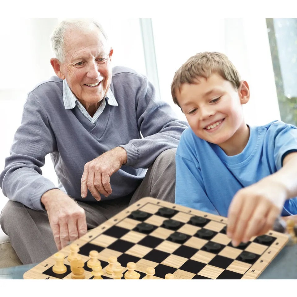 Wooden Board with 2 games in 1 chess & checkers can be played challenge your partner and test your intelligence & Moves will be fun with good wooden board.