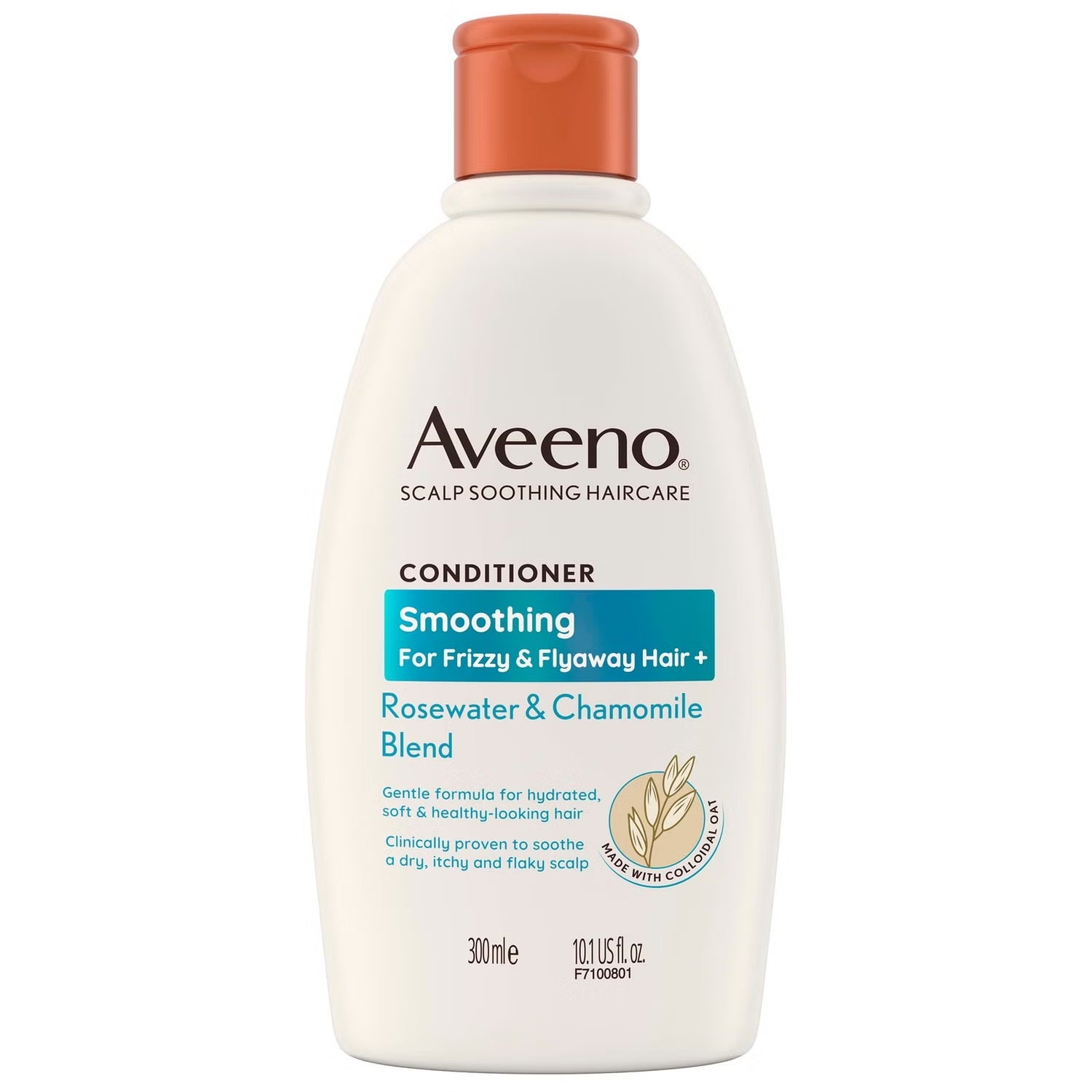تم تصميم بلسم Aveeno Haircare Smoothing+ Rose Water and Chamomile Blend خصيصًا للشعر الجاف، حيث يعمل على تنعيم الشعر بشكل واضح ويحمي أطواله من الجفاف بتركيبة نباتية.