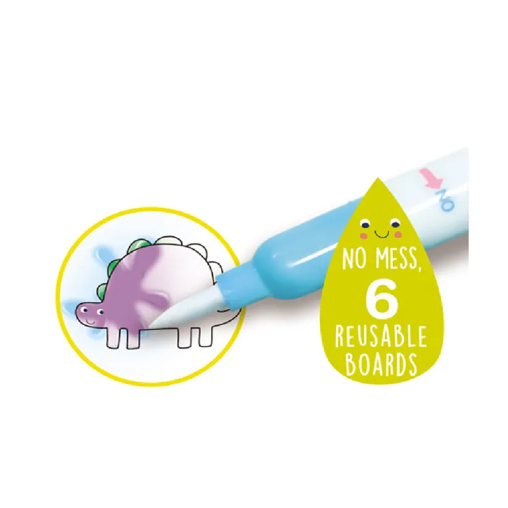 Avenir Magic Water Painting - Dinosaur, is a coloring book in a practical package with handles, so you can carry it easily! Your little ones will stay busy all day! They can paint the pictures again and again, just by wetting the brush with a little water. Once the sheet dries, the color disappears for repeat fun! With the extra puzzles hidden inside the book, we promise you will never get bored! , , Each book includes 6 reusable colouring surfaces and two sheets of repositionable stickers of themed activities and a refillable water pen. Fill the water pen with regular tap water, then draw to reveal the colour on the pages - it'll disappear when the water dries, then you can start again, just like magic! To double the fun, we've added lots activities to further inspire kids' learning, exploration, and imagination! Easy take anywhere designs - Fabulous illustrations and styling - Painting with water means NO MESS - Play with reposition stickers and learn - Maze game - Seek and find.