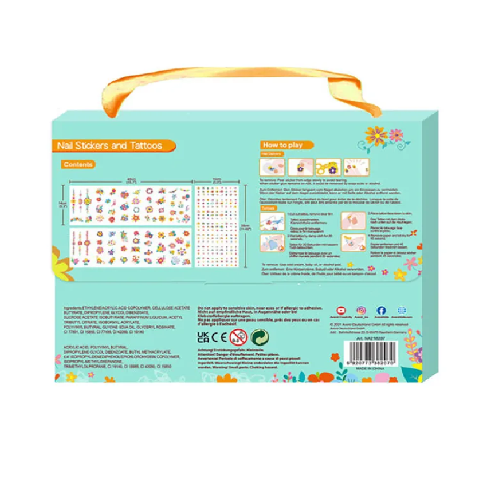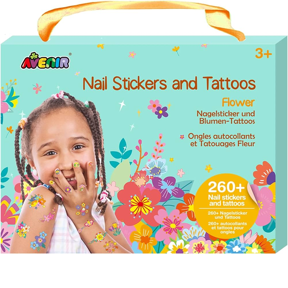 ملصقات أظافر للأطفال عصرية للغاية وملونة وأزياء وشم بتصميمات رائعة بطابع الزهور. في كل مجموعة تحصلين على 3 أوراق كبيرة وأكثر من 260 ملصق أظافر مؤقت ووشم؛ ارتديها في الخارج أو في الحفلات والمناسبات لإضفاء لمسة من الأناقة على أسلوبك الخاص! سهلة الاستخدام والإزالة. , , نشاط أزياء رائع للفتيات الصغيرات! من الممتع تزيينه ثم تصفيفه بنفسك! هدايا مثالية للصديقات.