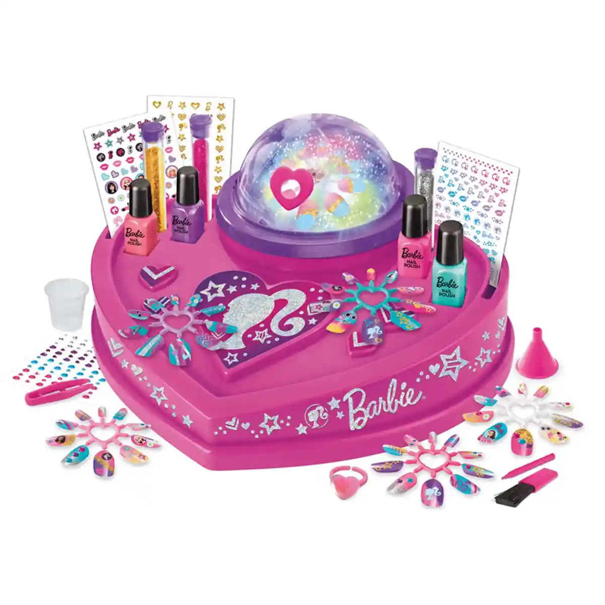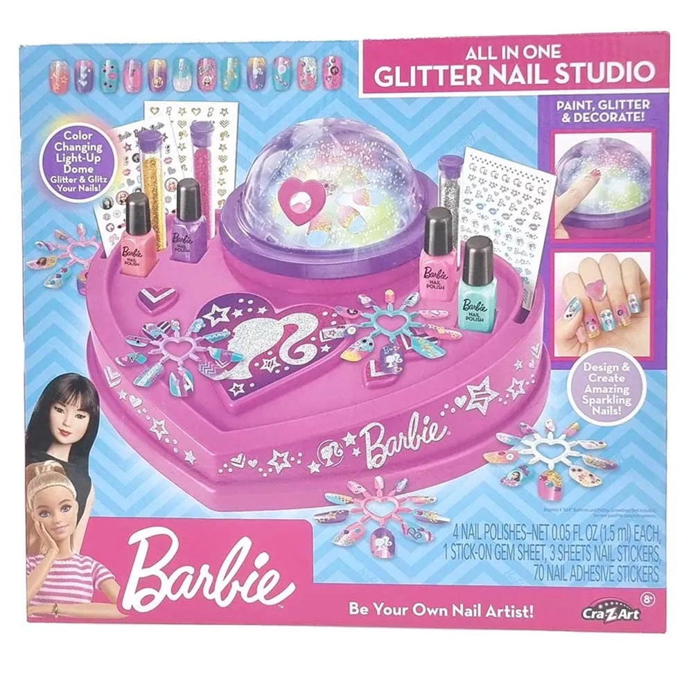 يعد Barbie Glitter & Shine Nail Studio الحلم النهائي الذي يتحقق لكل فتاة مهووسة بالموضة. مع هذا الاستوديو للأظافر، يمكن للفتيات إطلاق العنان لإبداعهن وإنشاء أظافر ووشوم لامعة تمامًا مثل Barbie™. يتميز الاستوديو بقبة مضيئة متغيرة اللون تضيف المزيد من الإثارة لتجربة فن الأظافر. مع بريق وتألق خالٍ من الفوضى، يمكن للفتيات التعبير عن أسلوبهن دون أي قلق. يتضمن الحجم المثالي لاستوديو الأظافر ظلال عصرية من طلاء الأظافر وأظافر عصرية وبريق وأوراق ملصقات فن الأظافر المميزة والمزيد. اسمحي لطفلتك الصغيرة بالتألق ودع خيالها ينطلق مع استوديو Barbie Glitter & Shine Nail Studio.