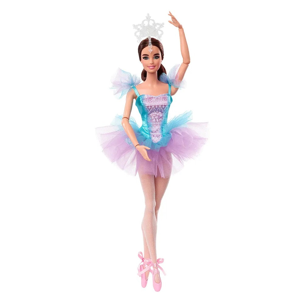 احتفلي بأداء خاص أو ألهمي أحلام الباليه مع دمية باربي من Ballet Wishes بمظهر أنيق لحفل راقص. ترتدي دمية باربي القابلة للتجميع زي راقصة باليه ساتان مع تنورة توتو من التول متعددة الطبقات. تضفي تاج لامع رائع وجوارب ضيقة وحذاء رقص وردي اللمسات الأخيرة على مظهرها الجاهز للحفل. تتميز دمية راقصة الباليه الجميلة هذه من باربي بنوع جسم رياضي ومفاصل عند الكتفين والمرفقين والمعصمين والوركين والركبتين لإمكانيات لا حصر لها في وضعيات الوقوف. تُعد دمية باربي من Ballet Wishes الهدية المثالية أو التذكار لمحبي الباليه والفنانين الذين تتراوح أعمارهم بين 6 سنوات وما فوق.