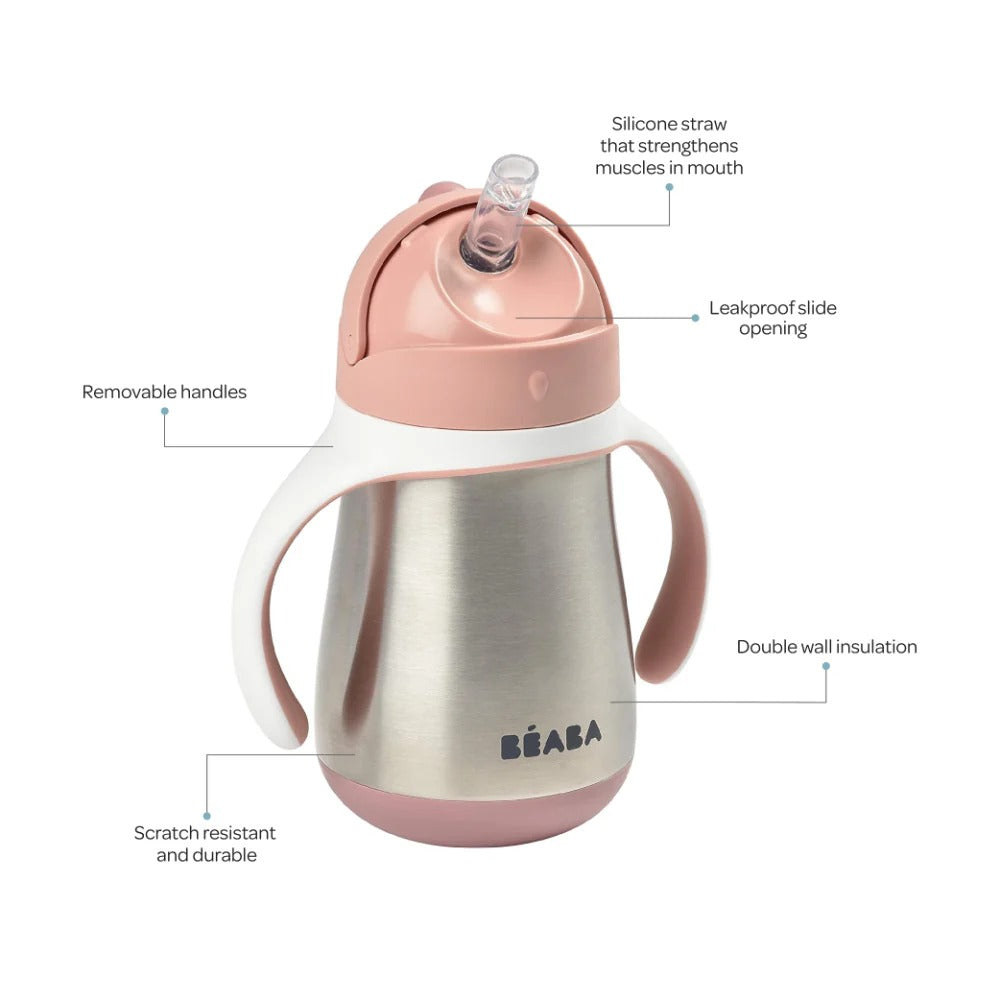 Beaba - Stainless Steel Straw Cup 250ml - Old Pink