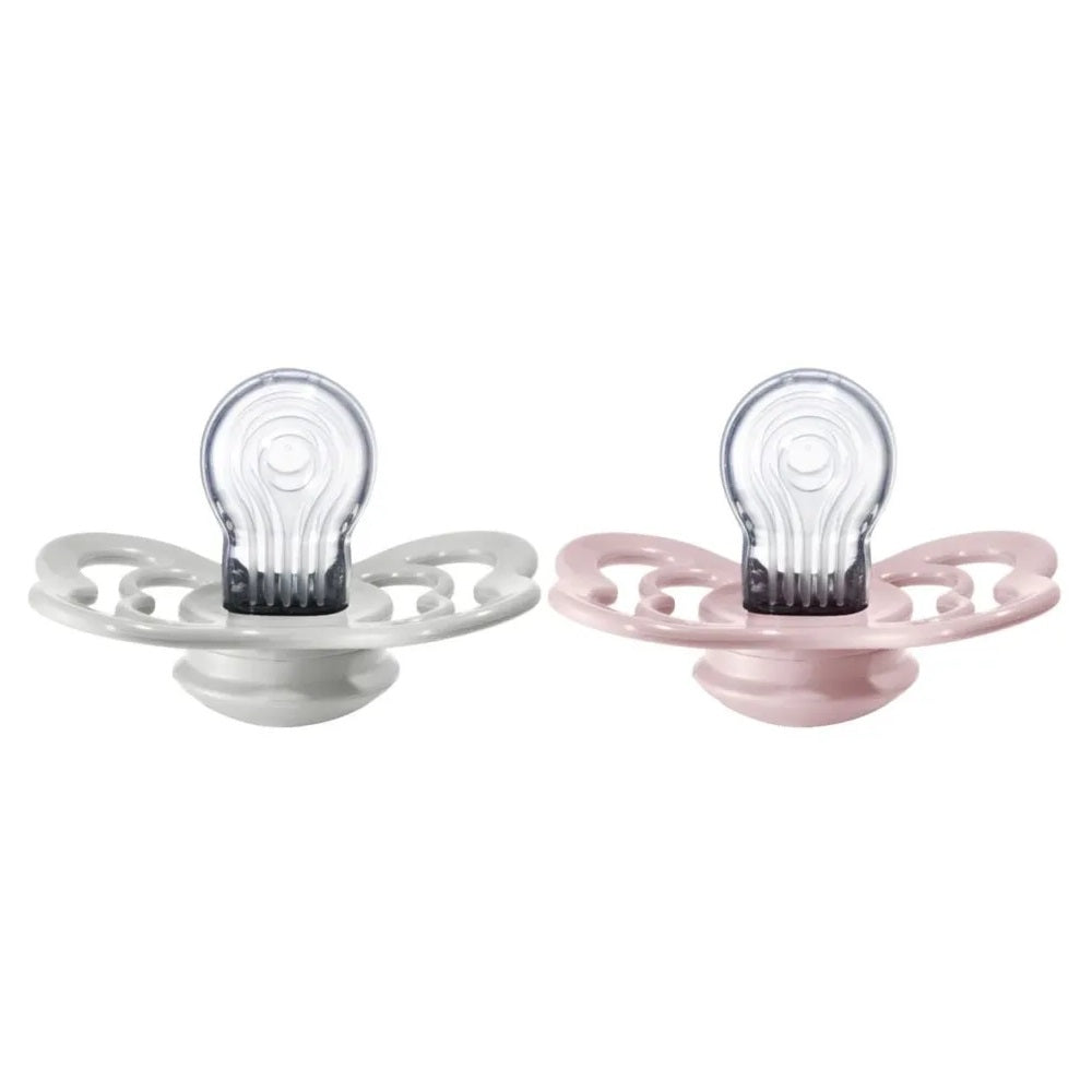 Bibs Supreme in 2 color combination is our new exclusive pacifier in a stylish Danish design.The Bibs Supreme pacifiers are symmetrically shaped and made in lightweight material completely FREE from BPA, PVC and phthalates. The nipple is designed to support proper jaw development and reduce pressure on the tooth position. Bibs Supreme is available in Size 1 and Size 2.The nipple is symmetrical shaped and comes in both natural rubber latex and silicone.The elegant shield is designed to ensure optimal passage of air so that the skin around the mouth remains dry.We have stated an approx. age for each size but this should only be used as a guideline. The anatomy of small children is different and some children prefer a larger or smaller nipple.And therefore we advise you to try what fits your baby and remember to replace it after 4-6 weeks, in regular use! The pacifiers nipple is made of silicone, which is soft, flexible and natural for the little ones. The round and soft shape resembles the mother's breast and is therefore an obvious choice for your baby. The shield is made of polypropylene (pp), which is a robust and lightweight plastic material. It is gently outwards curved to prevent skin irritation. It is equipped with air holes and a security handle.Bpa free. No phthalates. No bisphenol a. En1400 approved. For your baby's safety: do always inspect the product carefully before each use. Especially when the baby has teeth. Pull the pacifier in all directions. Discard it at the sign of damage or weakness. , , How to sterilize the pacifier: , 1) Put the pacifiers in a clean bowl , 2) Pour them with boiling water (do not cook), 3) Let the pacifier pull for approx. 5 min., 4) Pick them up and let them dry. The vast majority of pacifiers are with valve. If the nipple has a valve, be sure to squeeze excess water out of the seat part when the nipple is sufficiently cooled., , Tip: when the child is over 3 months old, you can also rinse the pacifier by placing them in a sieve and pouring them with boiling water. This method is partly faster and partly avoids water collecting inside the seat part.
