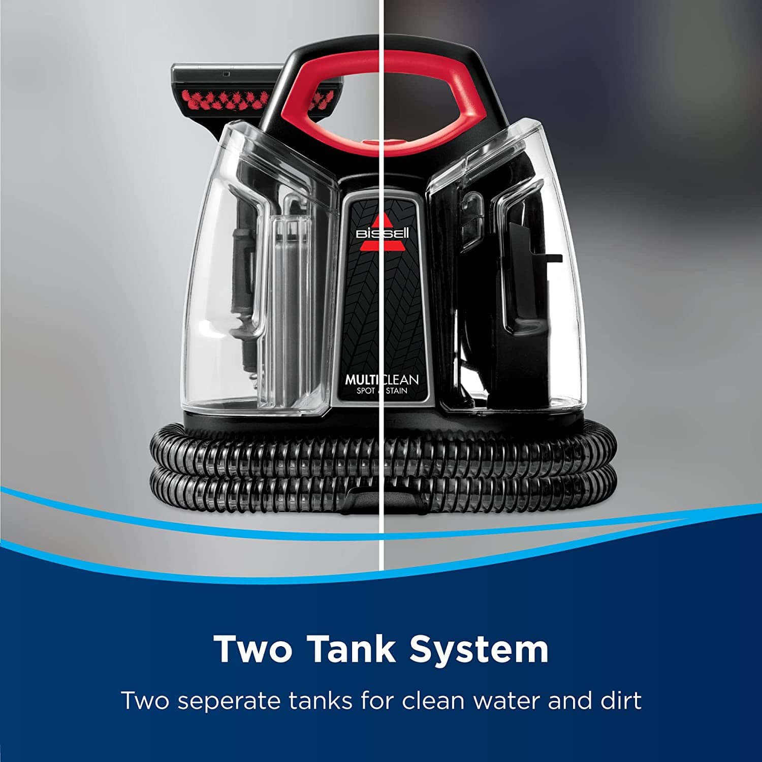 - Two tank system: bissell multiclean spot & stain carpet cleaner includes a removable water tank for easy filling and emptying