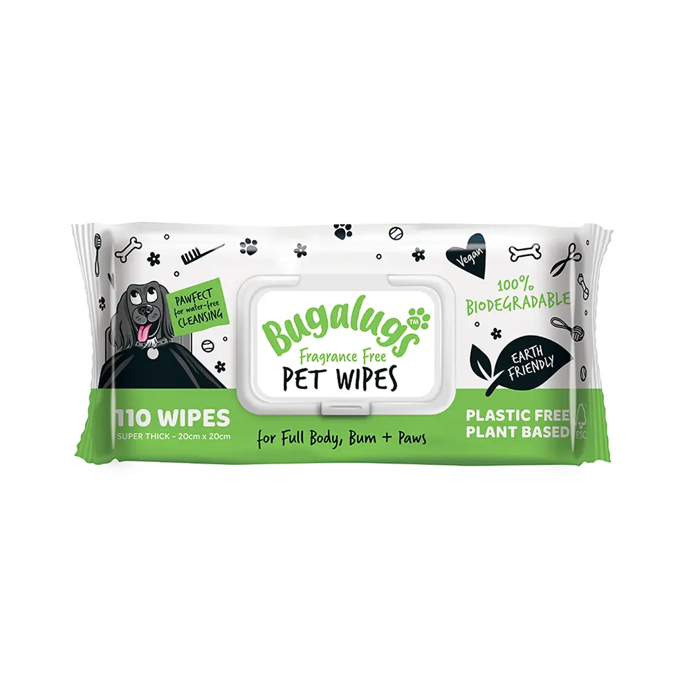 Bugalugs Fragrance Free Biodegradable Pet Wipes Pack Of 110