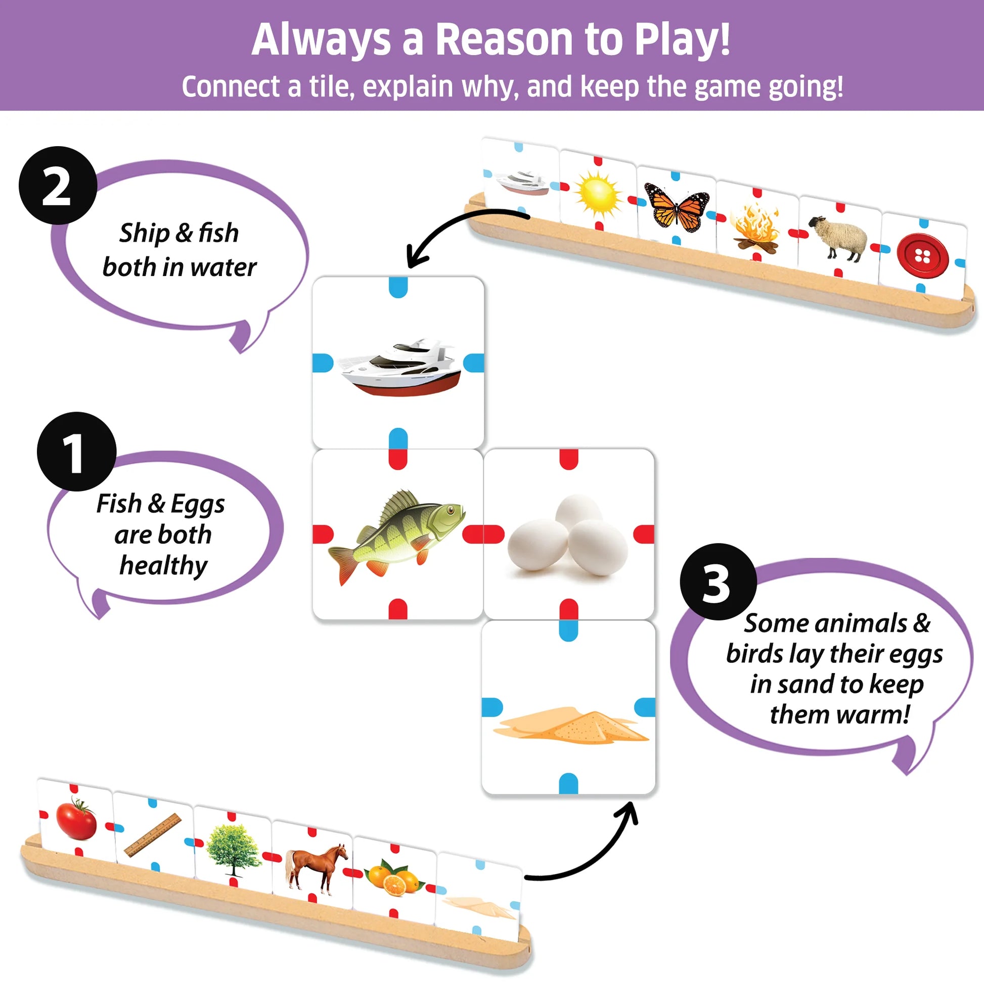 Why Connect is a super fun game of logic, reasoning, and creative thinking. A game that’s interesting and stretches your brain- children and adults alike. Think out of the box but be logical to win. Not bound by a board- Play anywhere and anytime! Screen-free play.