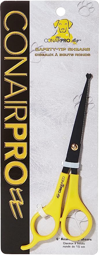 The Conair Pro Dog Shear Yellow 6inch is a must-have for professional dog groomers. With its sharp blades and comfortable grip, this shear effortlessly trims your dog's fur, leaving it smooth and manageable. Its 6-inch size allows for precise cuts, making it a reliable tool for any grooming session.