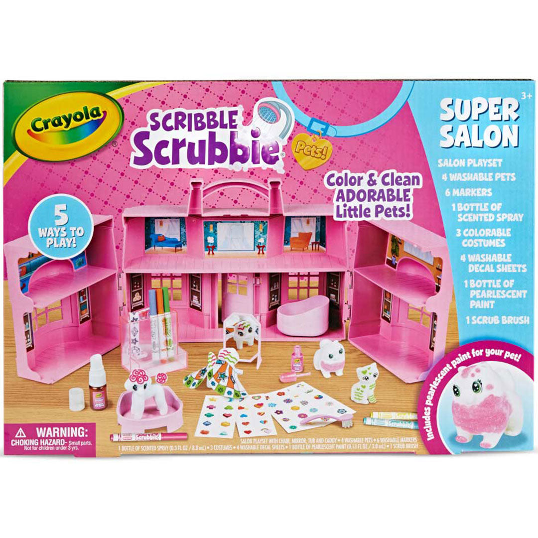 يوجد صالون جديد في المدينة، صالون سكريبل سكرابي سوبر! امنح حيوانات سكريبل سكرابي الأليفة مظهرًا جديدًا باستخدام طلاء لؤلؤي جميل وملصقات وأقلام تحديد وحتى رذاذ معطر. تحتوي مجموعة ألعاب الحيوانات الأليفة هذه على كل ما يلزم لخلق مظهر فريد من نوعه لحيواناتك الأليفة. قم بإقامة عرض أزياء وادعُ الأصدقاء للانضمام إلى المرح. عندما تكون مستعدًا لمظهر جديد، اغسل حيوانك الأليف وابدأ من جديد. مجموعة ألعاب الصالون السوبر هذه تشكل مجموعة بداية رائعة لهواة جمع سكريبل سكرابي الجدد أو إضافة مثيرة للمجموعات الموجودة. مثالية لأعياد الميلاد والعطلات، وهي آمنة للأطفال من سن 3 سنوات فما فوق.