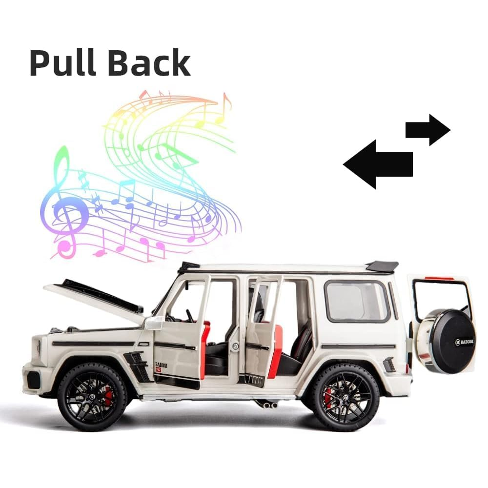 - Full-Featured Car Toy : The doors and the hood,The Tail can be opened,Press the two wheels of the front car to trigger the engine sound and lights, and open the door to trigger the lights of the front and rear lights. Place the car on the ground, hold down the car body and pull it back, the car will drive forward.