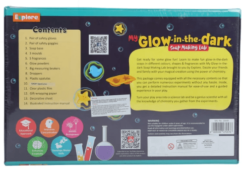هل أنت مستعد لبعض المرح المتوهج في الظلام؟ مع مختبر صنع الصابون المتوهج في الظلام الذي تقدمه لك Explore، تعلم كيفية صنع صابون متوهج في الظلام بثلاثة أشكال باستخدام 3 مساحيق متوهجة مختلفة و5 عطور. يأتي مع دليل تعليمات مصور.
