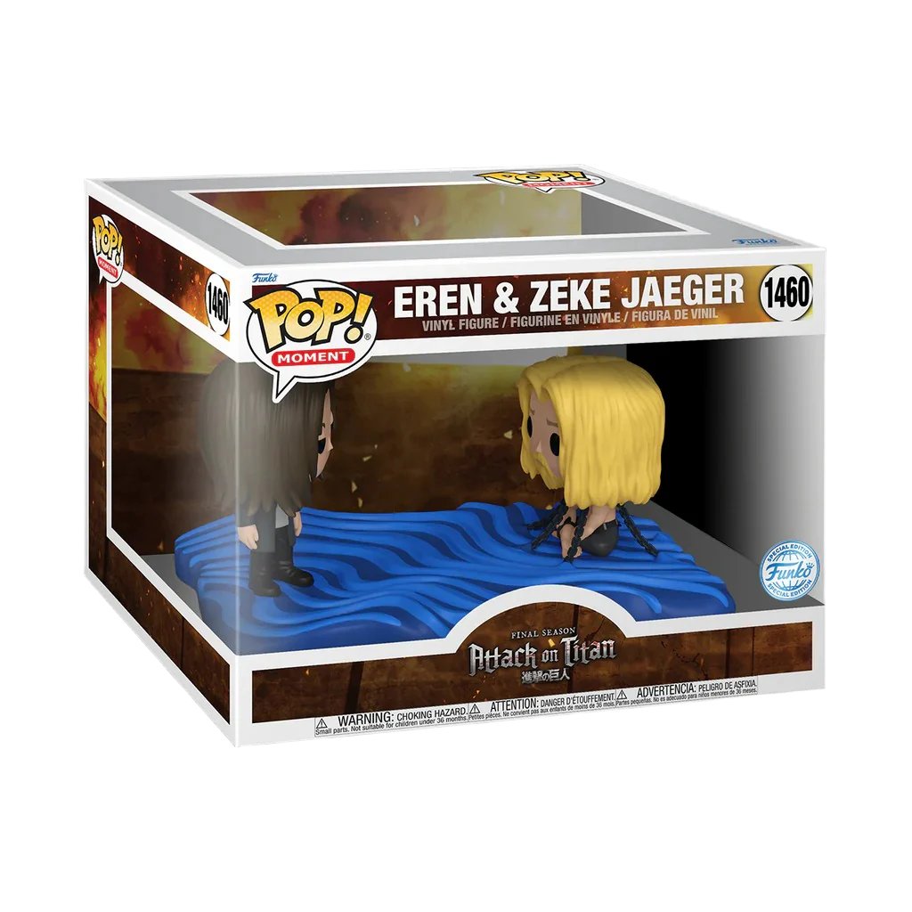 The fate of humanity hangs in the balance. Prepare your Attack on Titan collection for a showdown of two brothers. This exclusive Pop! Moment features Pop! Eren Jeager and Pop! Zeke Jeager in the sandy land of the paths. Vinyl figure is approximately 4.35-inches tall.