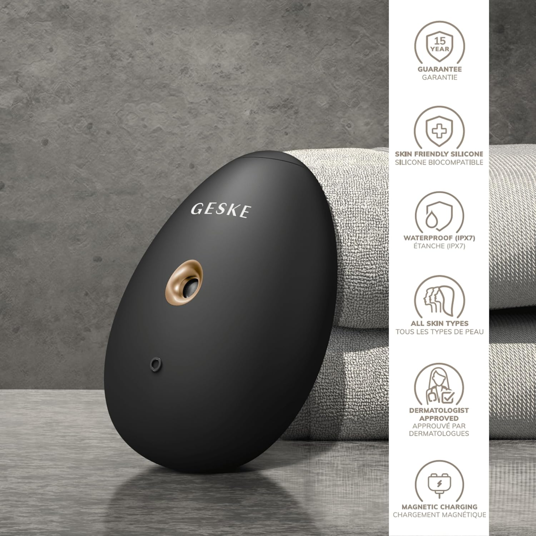 • SMART app: The Beauty Sensation consists not only of our devices, but also the GESKE app. Scan your skin and the app will create a customized skincare routine for you.