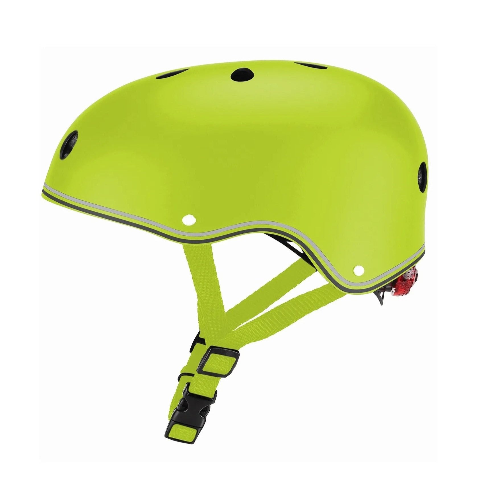 Globber children's helmet size XS/S (48-53 cm) with an adjusting ring, straps for easy and quick fitting of the helmet with a magnetic clasp and a removable visor. The adjusting ring is equipped with LED back lighting to improve visibility in low light conditions. All Globber helmets for children come with foam pads in an ABS housing and provide maximum comfort and safety. 11 air vents around the helmet circumference guarantee the best cooling.