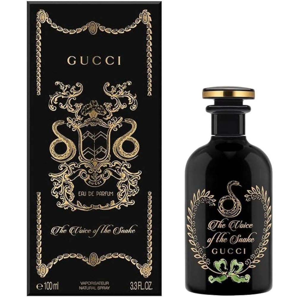 يعد عطر The Voice Of The Snake Eau De Parfum جزءًا من أول خط عطور فاخر من Gucci، The Alchemist's Garden. تم مزجه بواسطة صانع العطور الرئيسي Alberto Morillas تحت الإدارة الإبداعية لـ Alessandro Michele، وهو يجسد الطبيعة الغامضة والمنومة للثعبان بمزيج مكثف وخشبي من العود والبتشولي والزعفران. العطر محاط بزجاجة ثمينة مطلية باللون الأسود بتأثير الخزف، مزينة بلمسات ذهبية وزخرفة ثعبان متعرجة.