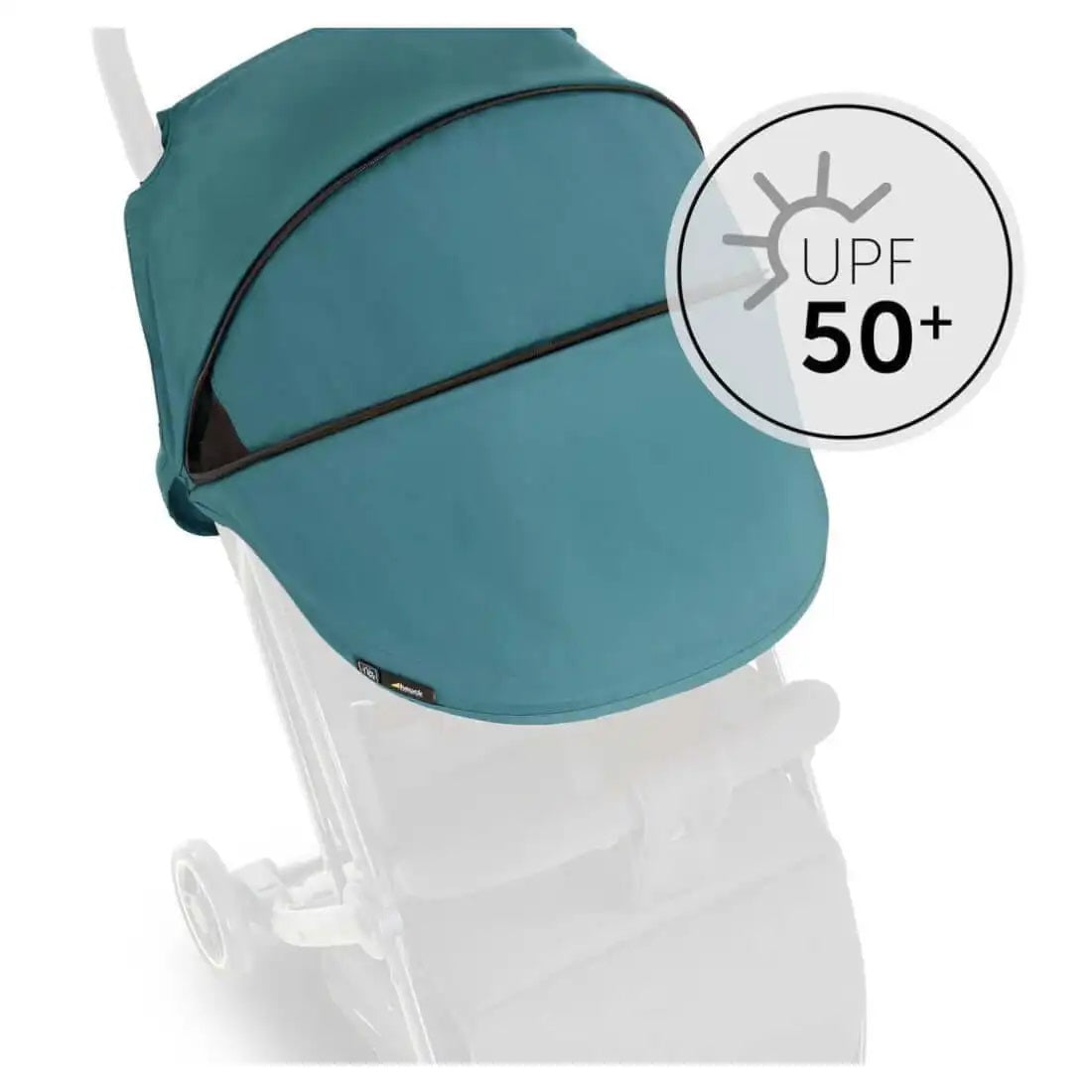 The XL switch canopy has a large 3-zone design that provides lots of shade on sunny days. Cloudy in the morning but sunny in the afternoon? No problem! By opening the zipper you can extend the canopy from two to three zones opening the lateral ventilation outlets for a better air circulation for your child. All 12 canopies are made of high-quality fabrics and are rated UPF 50+.
