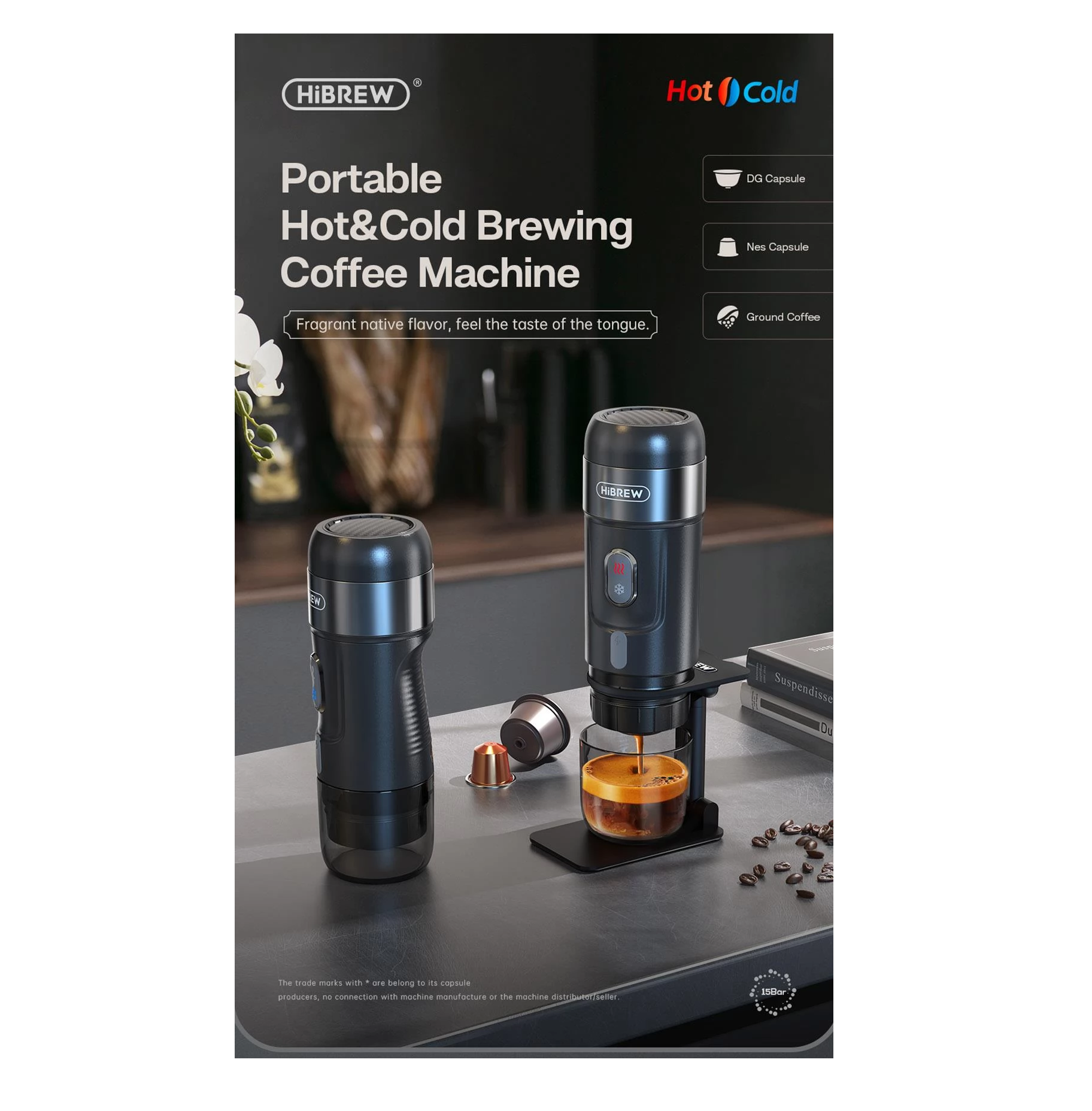 【3 in 1 Compatible Design】 This portable coffee machine is perfectly compatible with the Nes* Pod, DG* Pod and Ground Coffee (Recommended grinding is Fine, it is suitable for Espresso). Multi-functional compatible innovative design allows you to have more choices. Notice: other types of pod are not compatible.