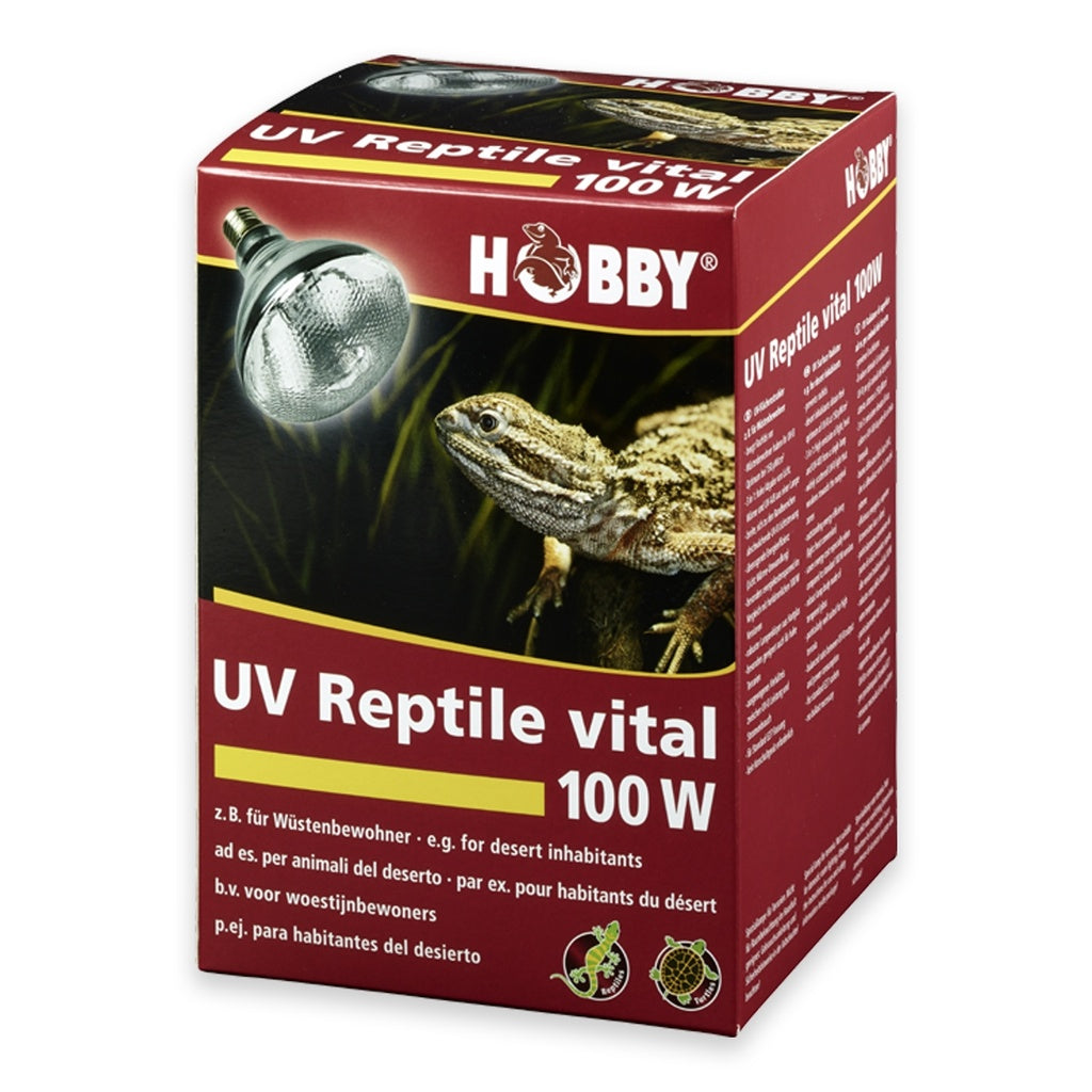 The 100_W UV surface radiators for reptiles from desert regions achieve their optimum UV-B output of 150_µW/cm_ at a distance of +/-_50cm from the animal. They provide high output of light, heat and UV-A/B in a single lamp and have a balanced UV-B output to power consumption ratio.