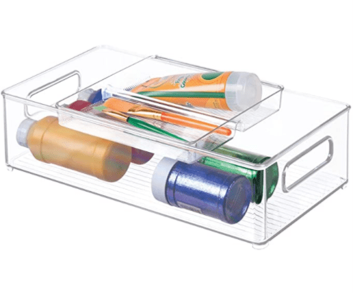 سلة مطبخ من قطعتين من إنترديزاين مع صينية مقسمة قابلة للإزالة لتخزين الطعام، شفافة