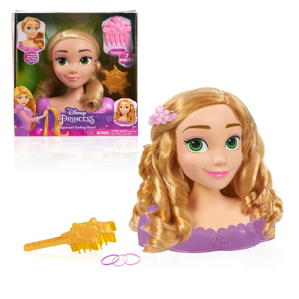 تسريحة شعر أميرة ديزني: تتيح رأس تصفيف شعر أميرة ديزني رابونزل لمصففي الشعر الصغار تمشيط شعر رابونزل ولفه وتضفيره للحصول على مظهر جديد جميل.