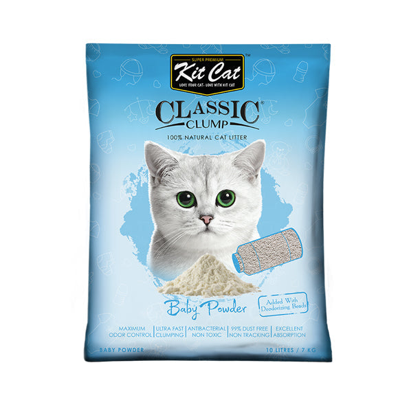 Kit Cat Classic ClumpTM is a revolutionary cat litter enhanced with deodorizing beads, specially formulated by cat lovers to provide exceptional odor control and ease of cleaning. Its superior hard clumping ability makes clean up a breeze – simply scoop the clump and throw it away. The rest of litter remains clean, odourless and ready to reuse, making it a very economical and environmentally friendly choice.