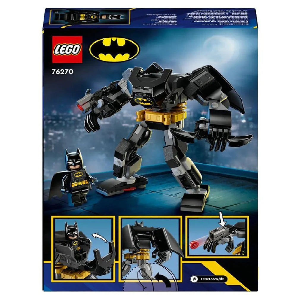 • Collectible robot toy – Includes a buildable Batman mech with a Batarang, stud launcher and jetpack, plus a Batman minifigure with a fabric cape and Batarang, which can be stored on the mech’s arm