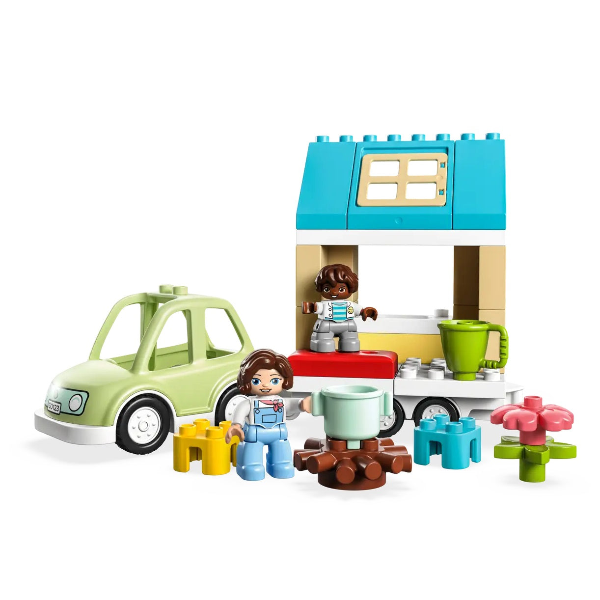 انطلق في مغامرة كبيرة مع طفلك الصغير المغامر باستخدام منزل العائلة المتنقل من LEGO® DUPLO® Town (10986). ساعد طفلك الصغير في بناء منزل متنقل لطيف يمكن ربطه بالسيارة. يمكن للأطفال في سن ما قبل المدرسة الذين تزيد أعمارهم عن عامين ربط المنزل والقيادة إلى أي مكان جديد يختارونه. من يدري ما هي الشخصيات الجديدة والمثيرة للاهتمام التي قد يقابلونها!
