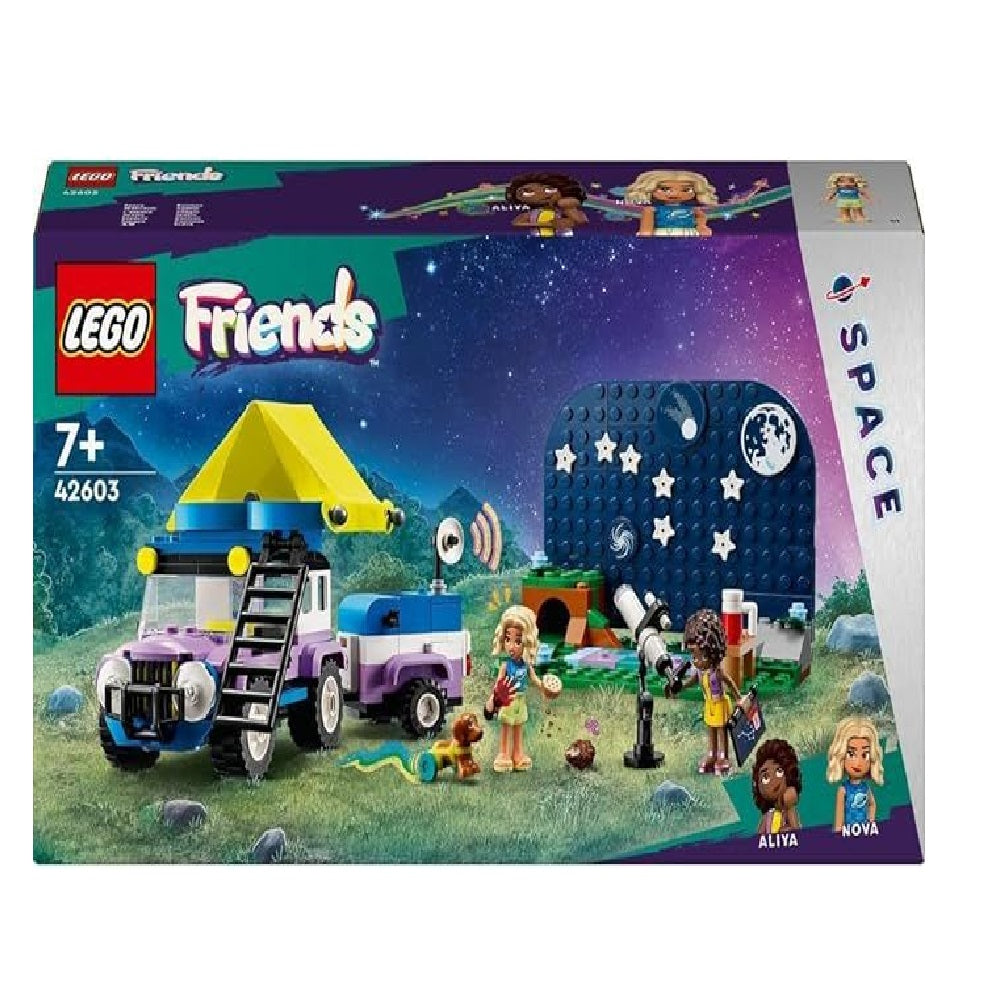 - Stargazing Camping Vehicle playset – Includes a buildable 4x4 vehicle with trailer and tent, toy telescope, 2 mini-dolls, a dog, a hedgehog and lots of accessories for girls, boys and kids aged 7+