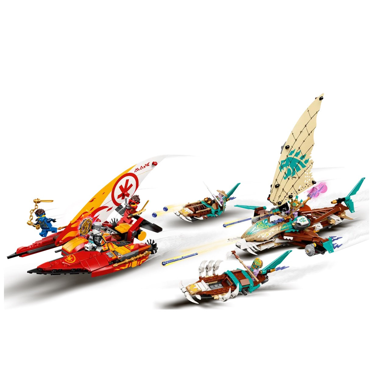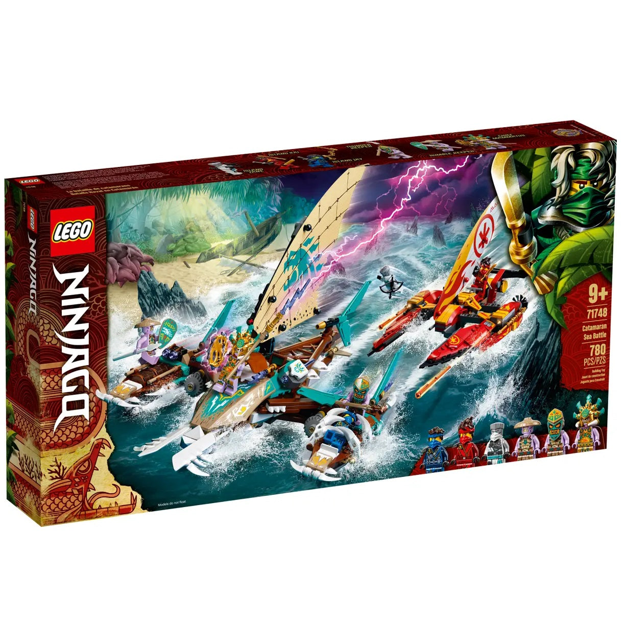 - مجموعة LEGO® NINJAGO® Catamaran Sea Battle (71748) هي مجموعة لعب نينجا مليئة بالإثارة تتكون من قاربين كاتاماران، أحدهما ينقسم إلى 3 قوارب، حتى يتمكن الأطفال من تنظيم مواجهات مثيرة في البحر.