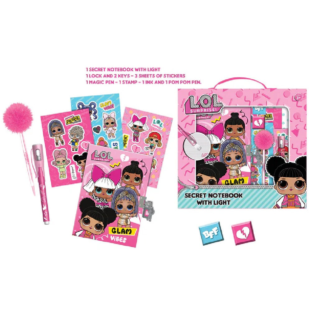 Write, doodle, and keep your secrets safe with the LOL Surprise Secret Notebook with Light! Featuring a stylish LOL Surprise cover design, this notebook comes with a special light feature that makes writing extra fun. Perfect for jotting down thoughts, notes, or creative ideas, it’s the ultimate accessory for every LOL fan.