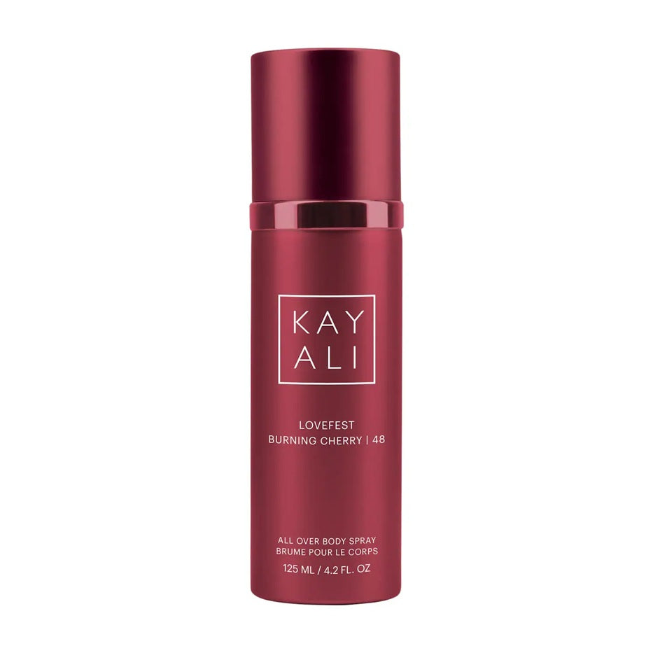 The limited-edition KAYALI Lovefest Burning Cherry | 48 All Over Body Spray is a soft take on the original luscious, sultry, and mesmerizing eau de parfum. It envelops you in a powerful continuous mist, making it your go-to companion for an irresistible scent and layering experience anytime, anywhere. Whether you're starting your day, refreshing after a workout, or looking for a perfect post-shower fragrance fix, this versatile spray is designed to uplift your senses—and your layering routine!