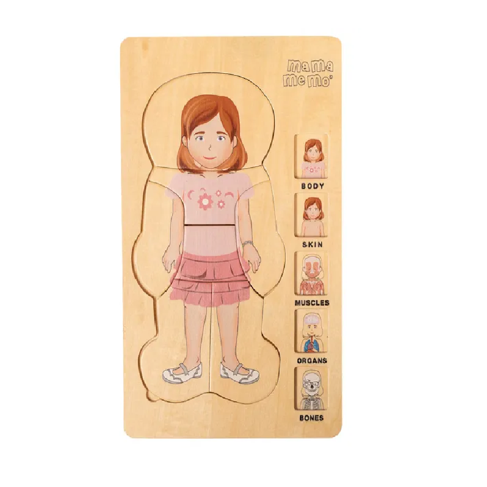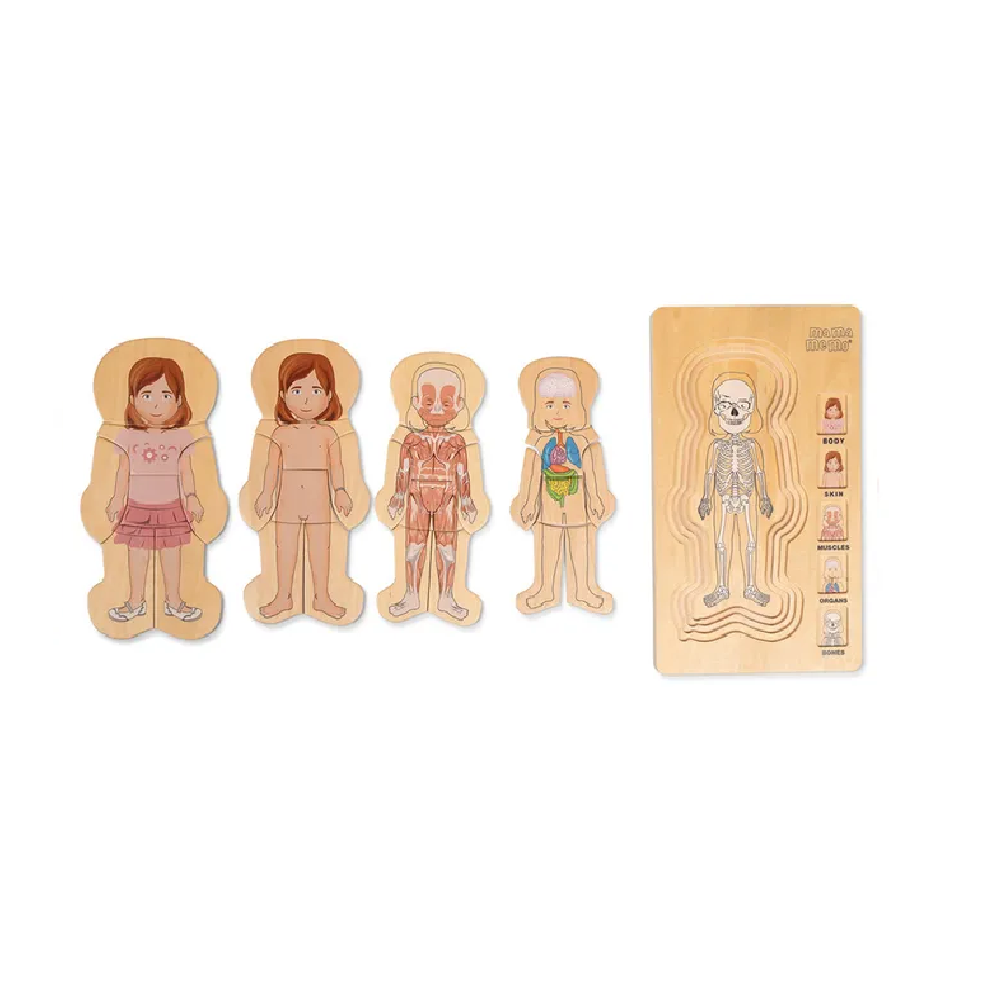 كيف نبدو؟ أعني تحت جلدنا مباشرة. تعرف على المزيد حول بنية أجسام الأولاد والبنات وكيف نبدو مع لغز MAMAMEMO هذا. يحتوي اللغز على خمس طبقات. تُظهر الطبقة العلوية صبيًا/فتاة يرتدي ملابس؛ تُظهر الطبقة الثانية الصبي/الفتاة بدون ملابس؛ تُظهر الطبقة الثالثة العضلات تحت الجلد؛ تُظهر الطبقة الرابعة الأعضاء الداخلية؛ وتُظهر الطبقة الأخيرة الهيكل العظمي. يوجد على ظهر كل قطعة رقم يوضح أي القطع تنتمي إلى أي طبقات. ، ، إنها لغز ممتاز للتعلم. يمكن للطفل إما اللعب باللغز بمفرده أو مع شخص بالغ، يمكنه إخباره بكل شيء عن أجزاء الجسم المختلفة ووظائفها. ألعابنا الخشبية مصنوعة خصيصًا لتوفير الترفيه وتحسين التعلم. تتوافق جميع ألعابنا مع اللوائح الأوروبية لسلامة الألعاب وهي تحمل علامة CE.