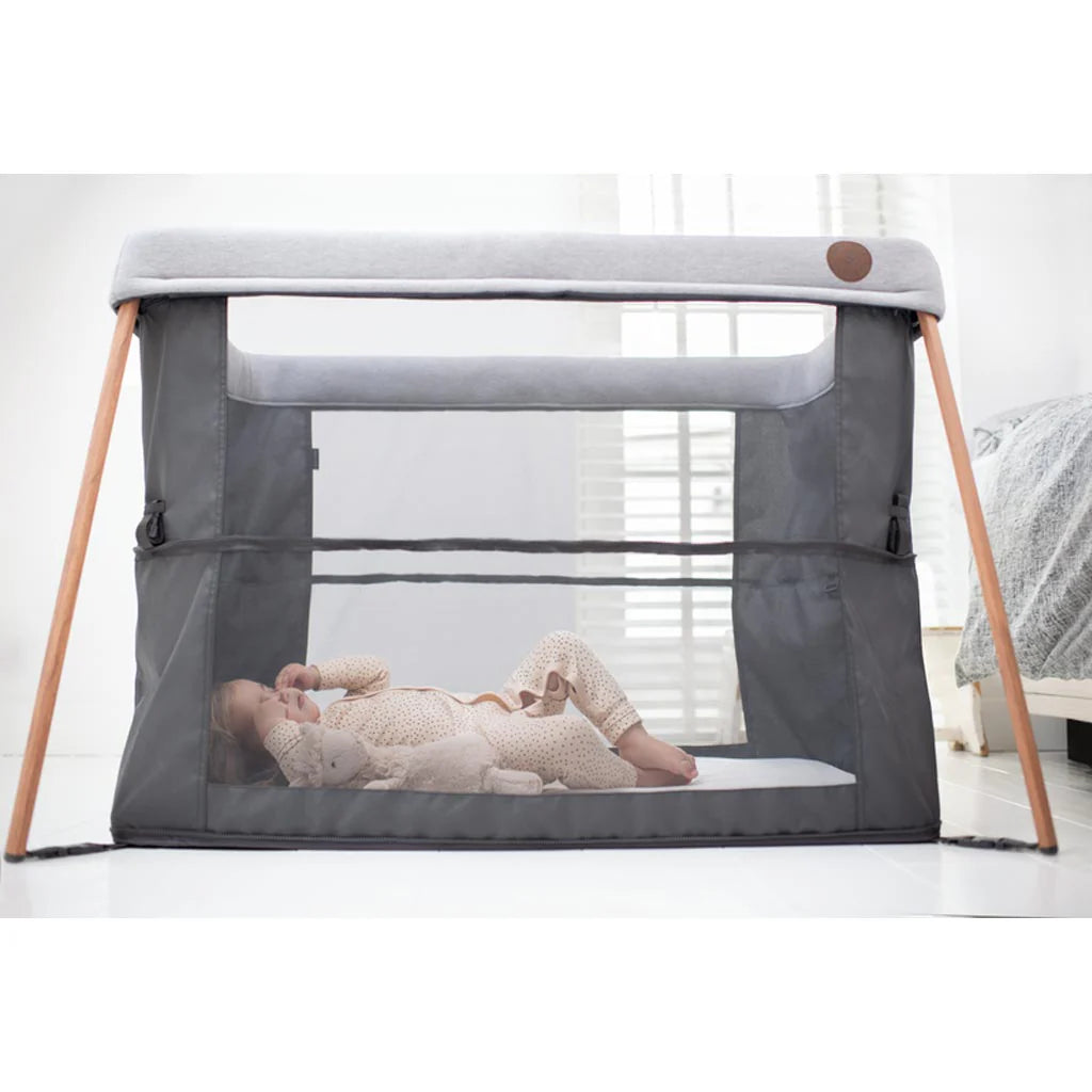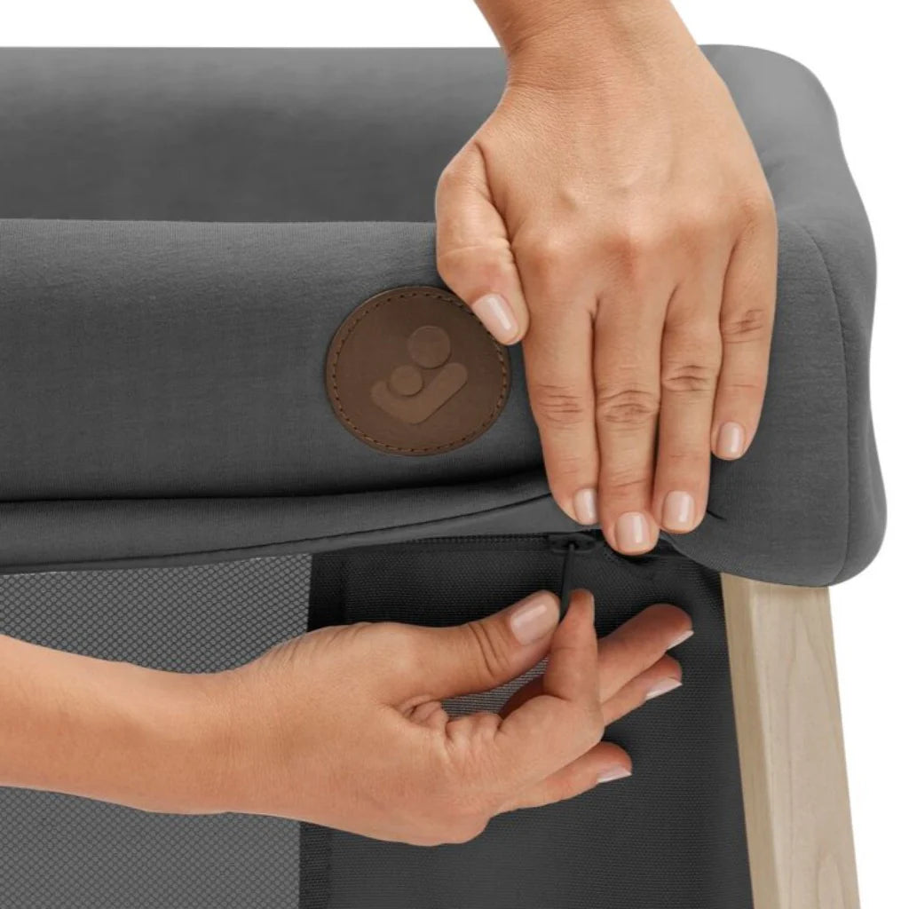 لا داعي للتنازل عن المظهر أثناء وجودك خارج المنزل أو أثناء خوضك لمغامرة! سرير السفر المدمج من Iris هو أفضل سرير سفر متوفر في السوق. وهو متوفر باللون الجرافيتي الأساسي الأنيق مع لمسات نهائية خشبية فاخرة. يحتوي سرير السفر من Iris على أغطية قابلة للإزالة والغسل في الغسالة.