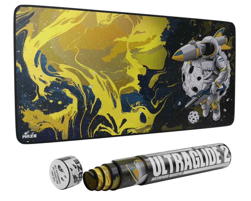تصميم Astro Yellow Blaze: تتميز لوحة الماوس برسومات جذابة مستوحاة من الطاقة الديناميكية للكون. إنها تضيف لمسة فريدة وشخصية إلى مساحة اللعب أو العمل الخاصة بك، مما يجعلها أكثر من مجرد لوحة ماوس - إنها تعبير عن التزامك بالتميز والجماليات.