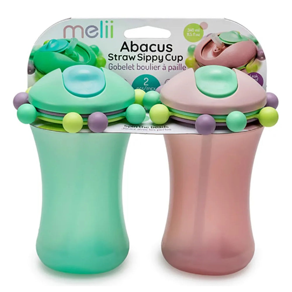 Melii - Abacus Straw Sippy Cup - 2pcs - Green & Pink