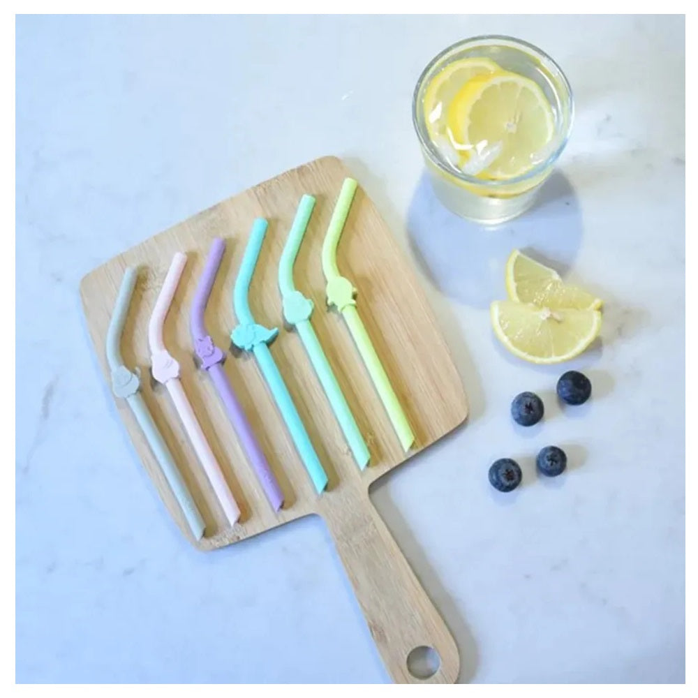 The six-piece reusable straw set comes with a cleaning brush, making maintenance a breeze. Perfectly sized for babies learning to drink from straws and suitable for kids of all ages, these straws are compatible with most baby and kids cups and tumblers. Microwave and freezer safe, they can be used with favorite hot and cold beverages. Make drinking time enjoyable and safe with our Animal-Shaped Silicone Straws.