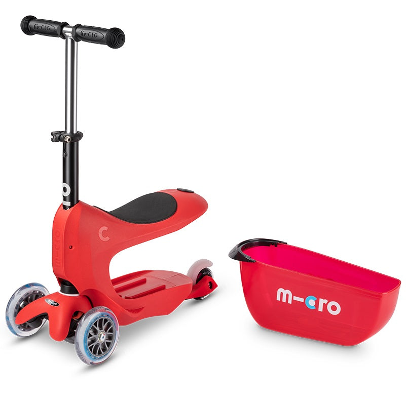 The Mini2go Deluxe is an innovative little scooter with storage space for the kids’ belongings. Once the bits and bobs are stowed away, or the snacks for a picnic in the countryside, the child simply steps on and scoots off. The Mini2go makes your little one mobile from as early as 18 months’ old and accompanies him or her up to the age of 5. Control takes place by means of weight transfer, thus promoting motor skills and balance in the children.