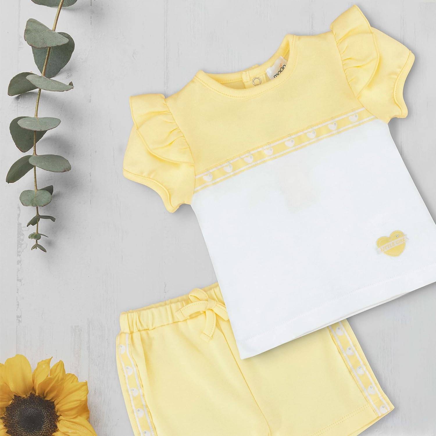 - MOON 100% Cotton Short-Sleeved Top & Shorts 6-9M Yellow - Lemon Hearts