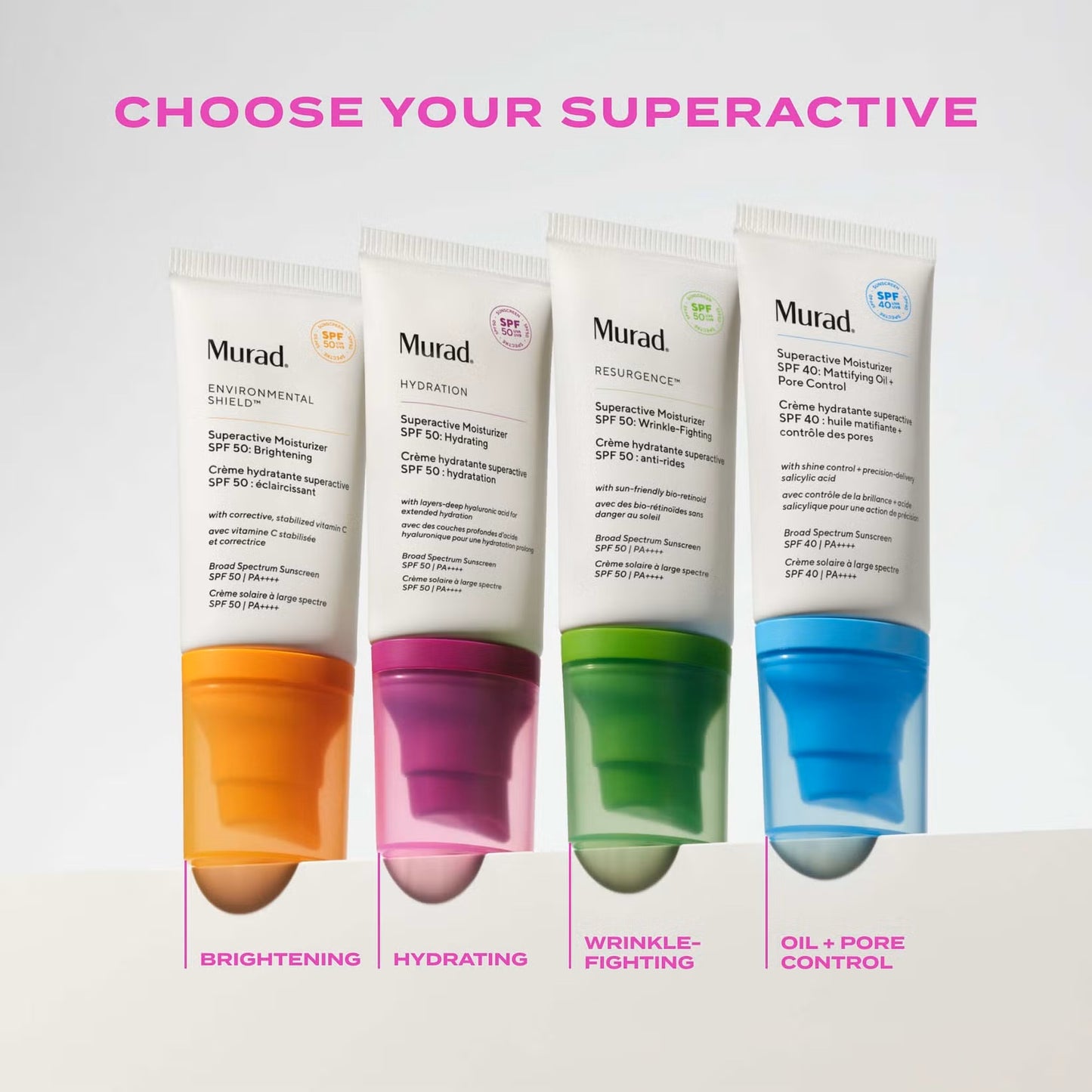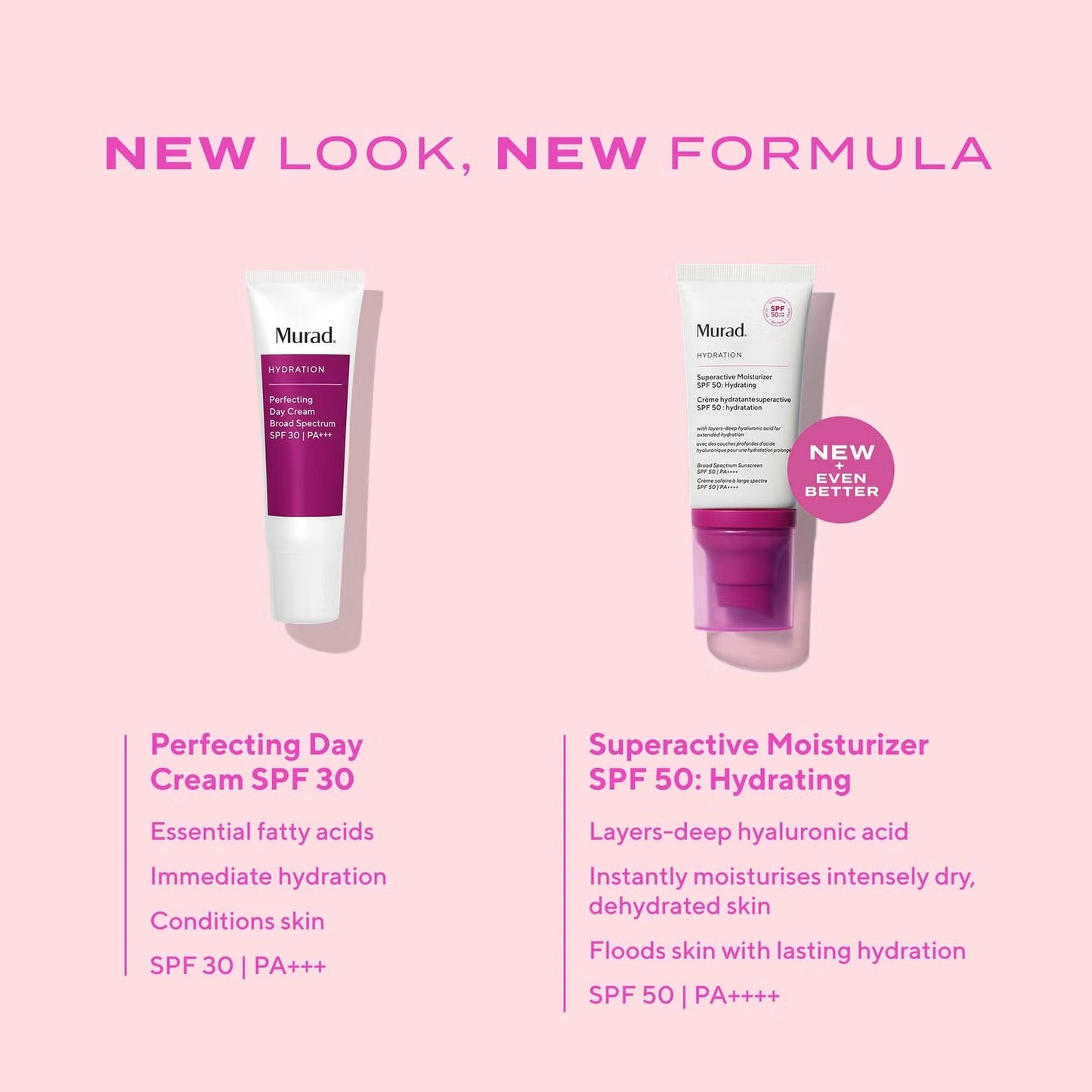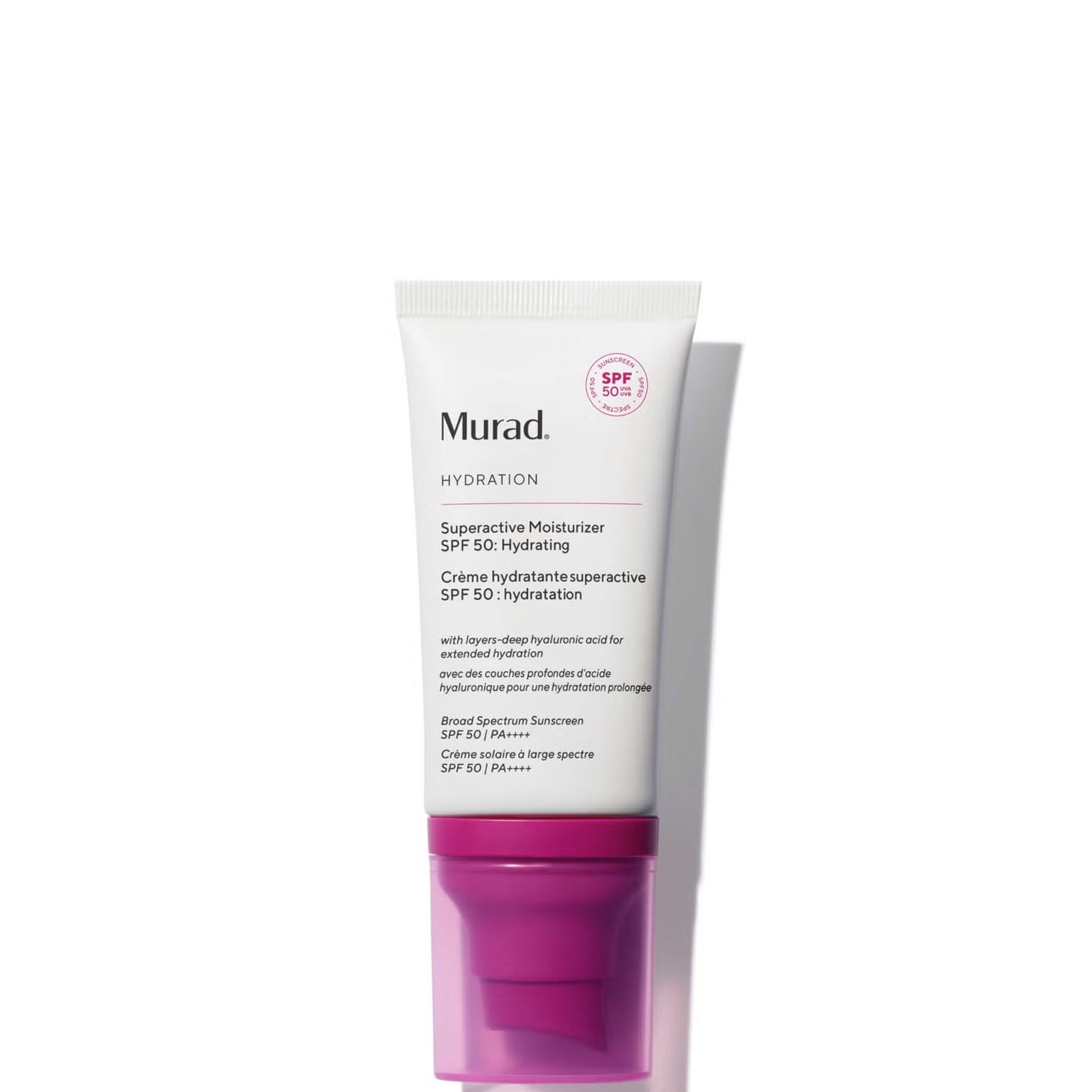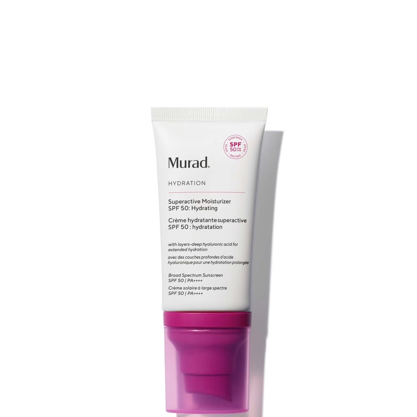 Streamlining your morning skincare routine, the Murad Hydrating Superactive Moisturiser SPF 50 delivers high UV protection and intense hydration in one step.