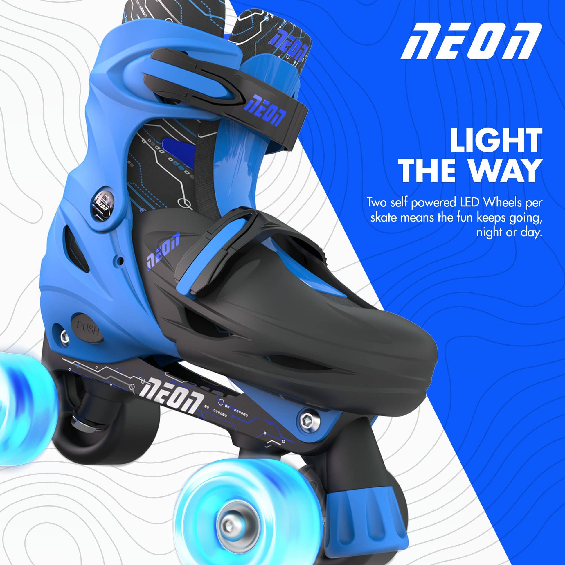 The Neon Combo Inline Skates in Goteki Blue are designed for kids and teens seeking a safe, durable, and fun skating experience. Adjustable to fit US sizes 12–2, these skates grow with your child, ensuring a secure and comfortable fit for extended use. Equipped with smooth bearings, they provide effortless gliding and responsive control, making them perfect for beginners developing balance and coordination or young skaters enhancing their skills. The bright neon Goteki Blue design adds a vibrant and stylish touch, promoting visibility and encouraging outdoor activity. Built with high-quality, durable materials, these skates offer long-lasting support and reliable performance on various surfaces. The comfortable inner liner cushions the feet, reducing fatigue and allowing longer skating sessions with ease. Lightweight and practical, the Neon Combo Inline Skates combine safety, comfort, and style, making them ideal for recreational use in parks, playgrounds, or neighborhood streets. Perfect for beginners and young skaters, they provide confidence-building fun while promoting active outdoor play and physical development. A stylish, durable, and engaging choice for any young skater, these skates make outdoor adventures safe, enjoyable, and motivating.